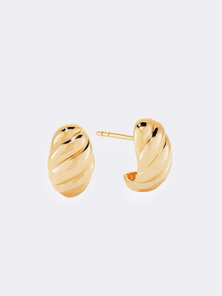 Örhängen i högpolerat rostfritt stål som är PVD-pläterat med 18K guld. Tidlöst smycke tillverkat i ett vattentåligt, allergivänligt och slitstarkt material som håller dem fina länge. Bada, duscha och träna utan att oroa dig för att de ska tappa färg.
