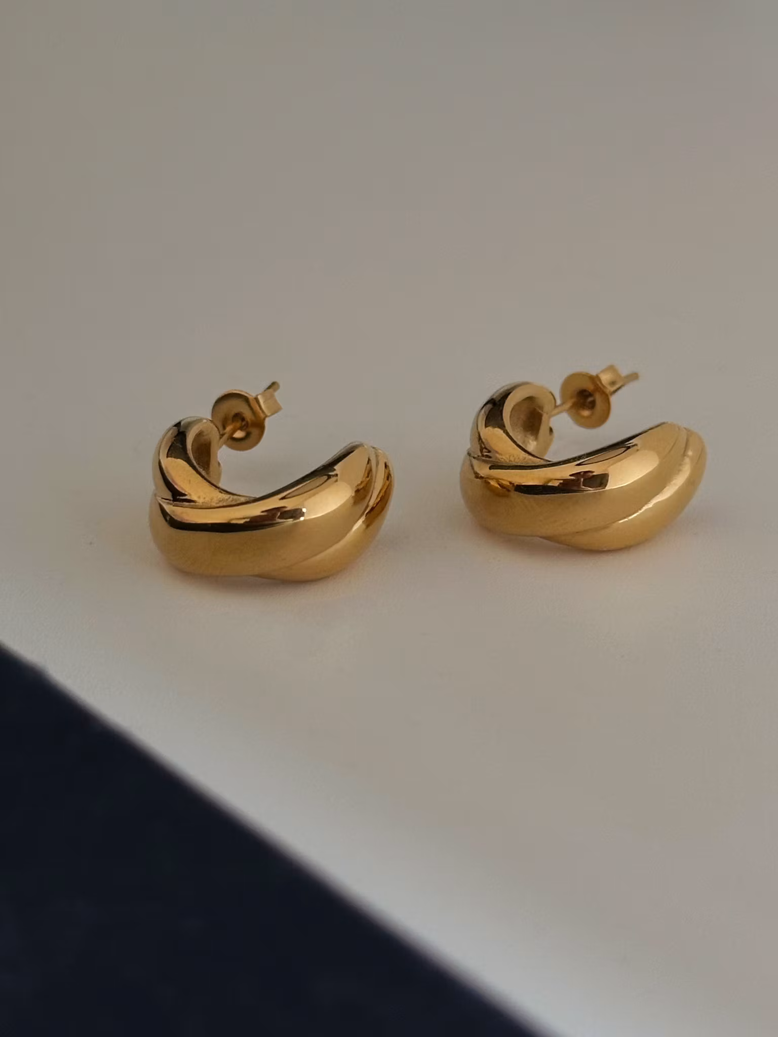Örhängen i högpolerat rostfritt stål som är PVD-pläterat med 18K guld. Tidlöst smycke tillverkat i ett vattentåligt, allergivänligt och slitstarkt material som håller dem fina länge. Bada, duscha och träna utan att oroa dig för att de ska tappa färg.