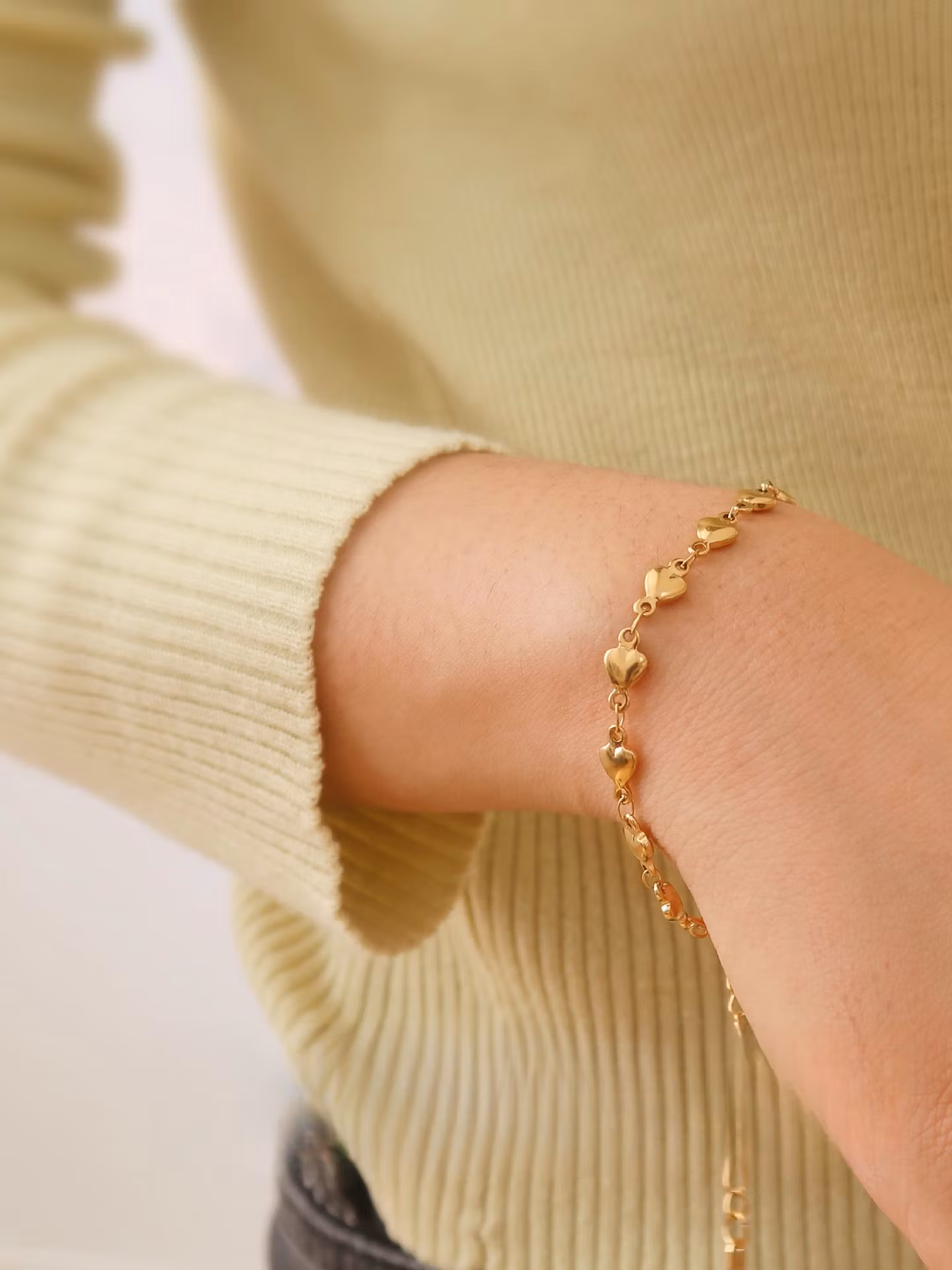 Armband i högpolerat rostfritt stål som är PVD-pläterat med 18K guld. Tidlöst smycke tillverkat i ett vattentåligt, allergivänligt och slitstarkt material som håller dem fina länge. Bada, duscha och träna utan att oroa dig för att de ska tappa färg.