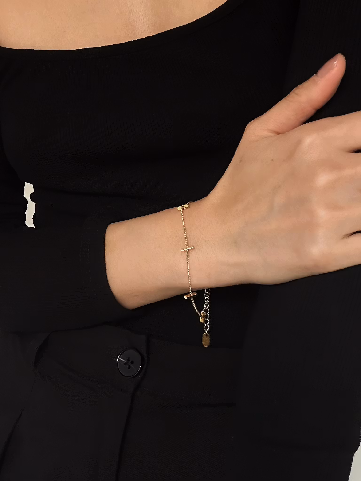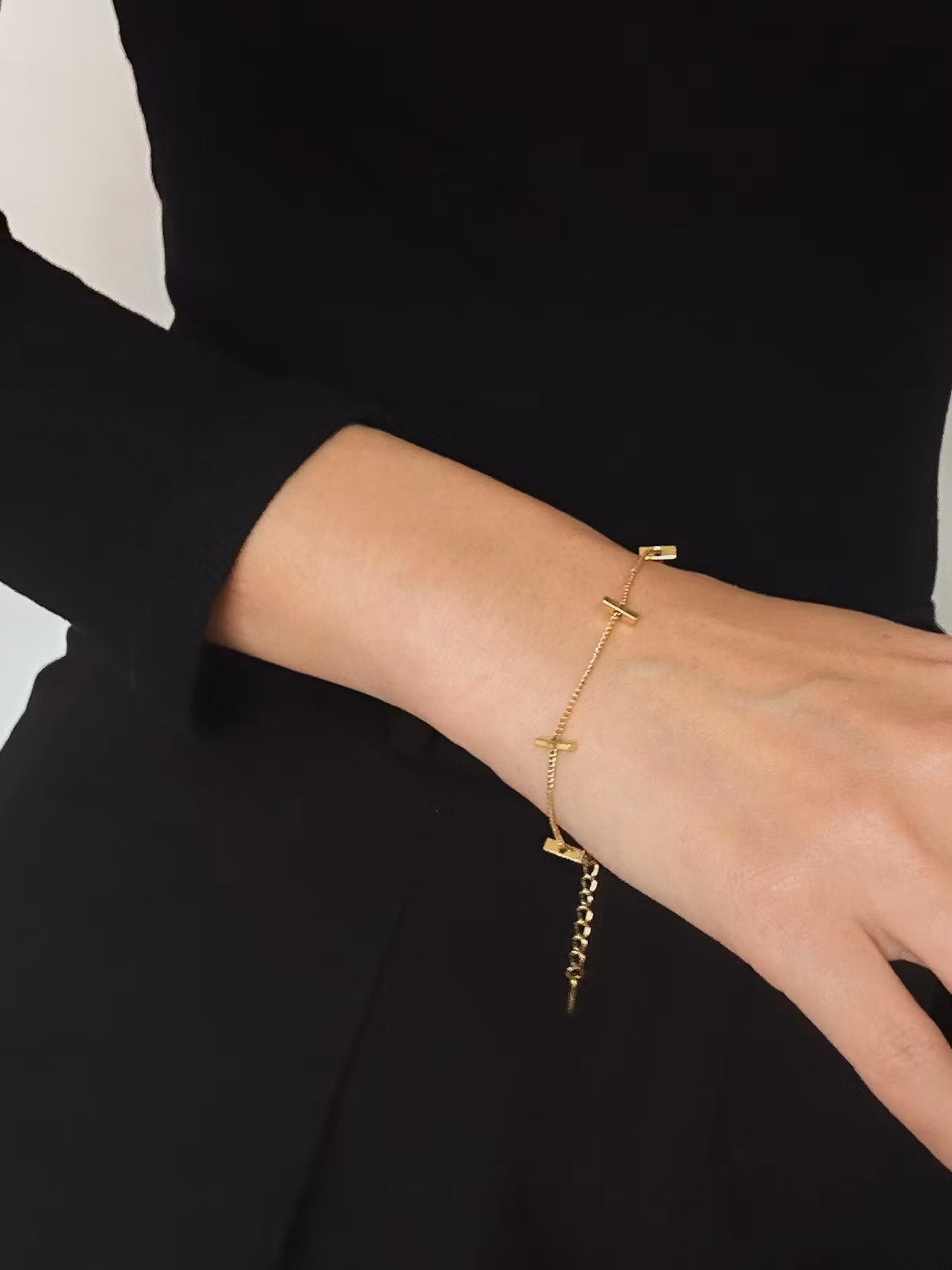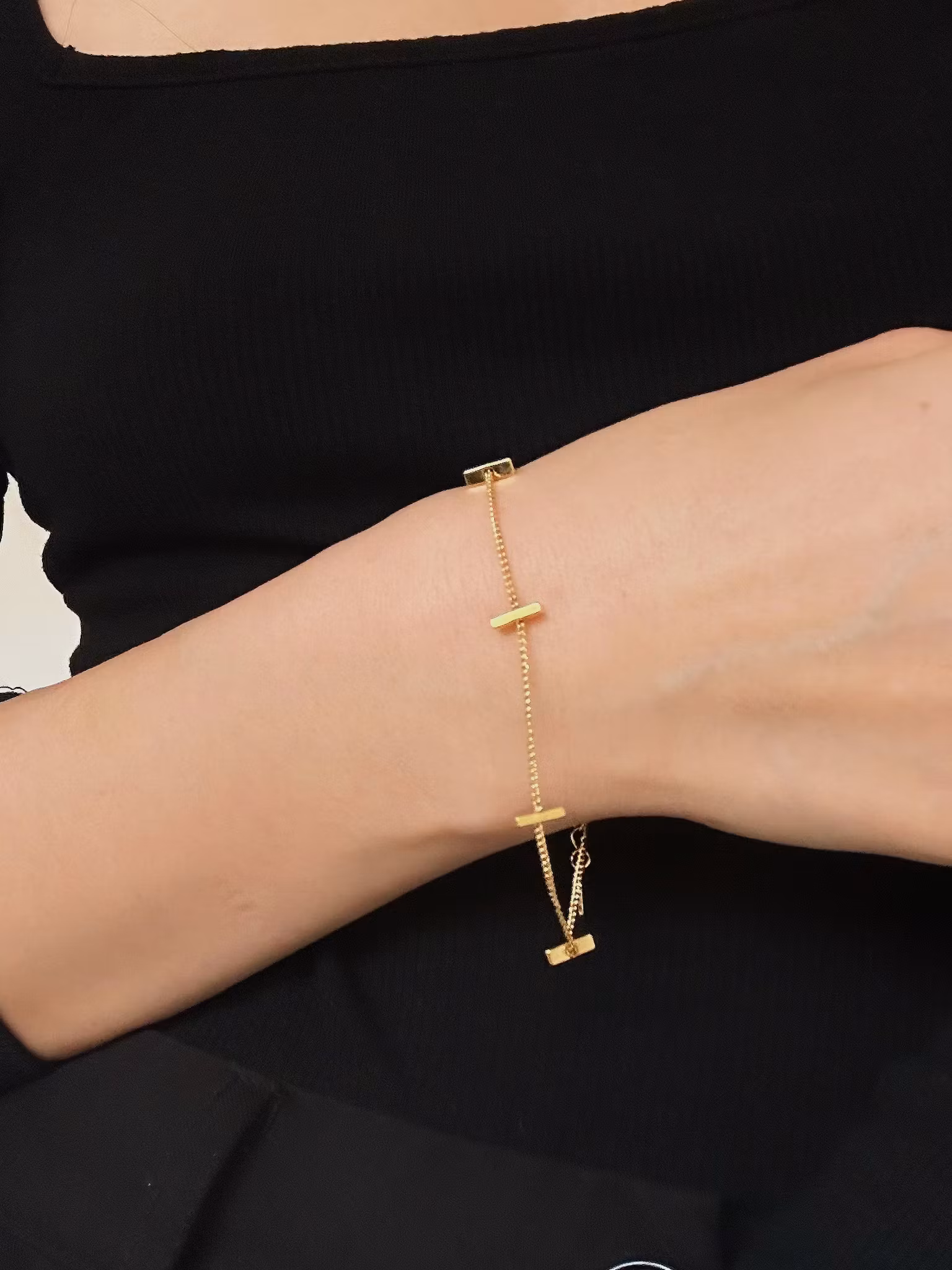 Smalt kedjearmband med pinne i 18K guldpläterad koppar. Ett stilrent smycke med tidlös design som matchar alla dina outfits och passar till vardagens alla tillfällen. Kombinera gärna med andra armband och smycken för en festligare look.