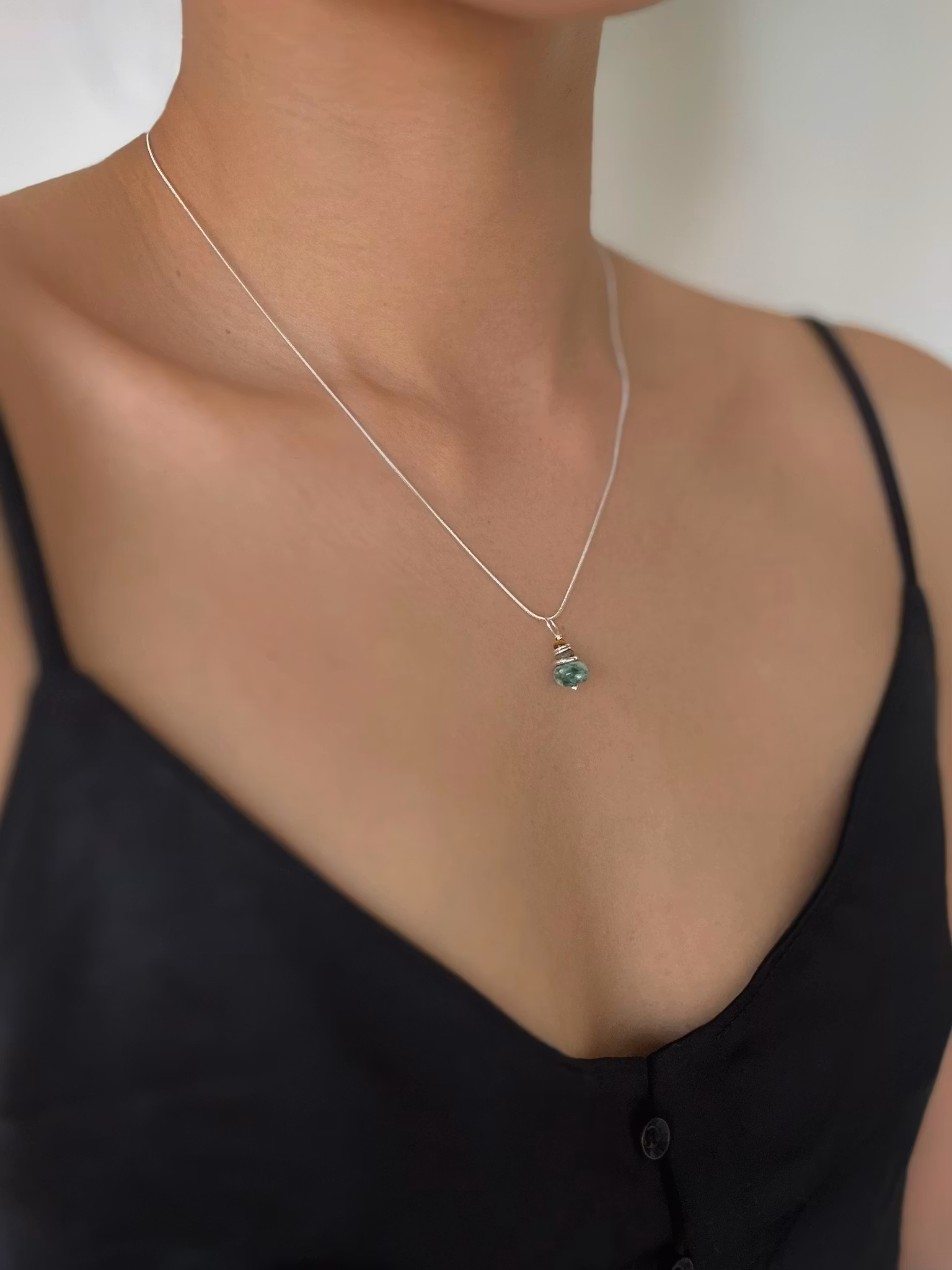 Halsband i äkta silver med natursten och conch design. Ett stilrent halsband med dekorativ detalj och väldigt somrig stämning.