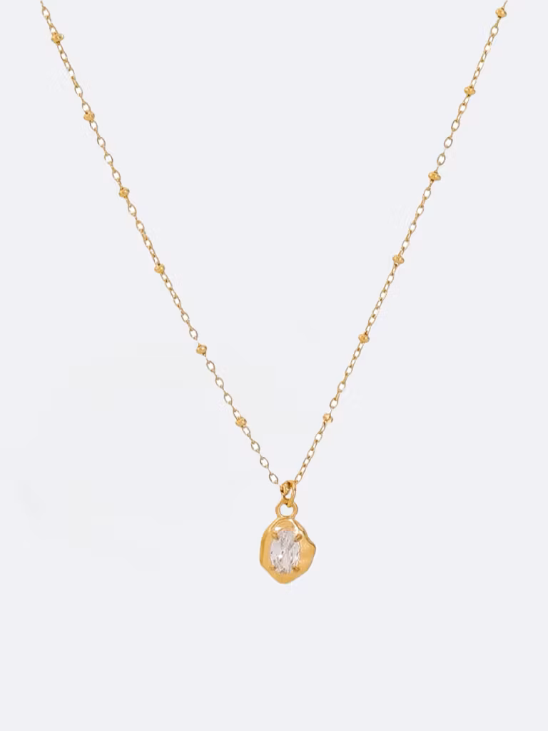 Halsband i högpolerat rostfritt stål som är PVD-pläterat med 18K guld. Tidlöst smycke tillverkat i ett vattentåligt, allergivänligt och slitstarkt material som håller dem fina länge. Bada, duscha och träna utan att oroa dig för att de ska tappa färg.