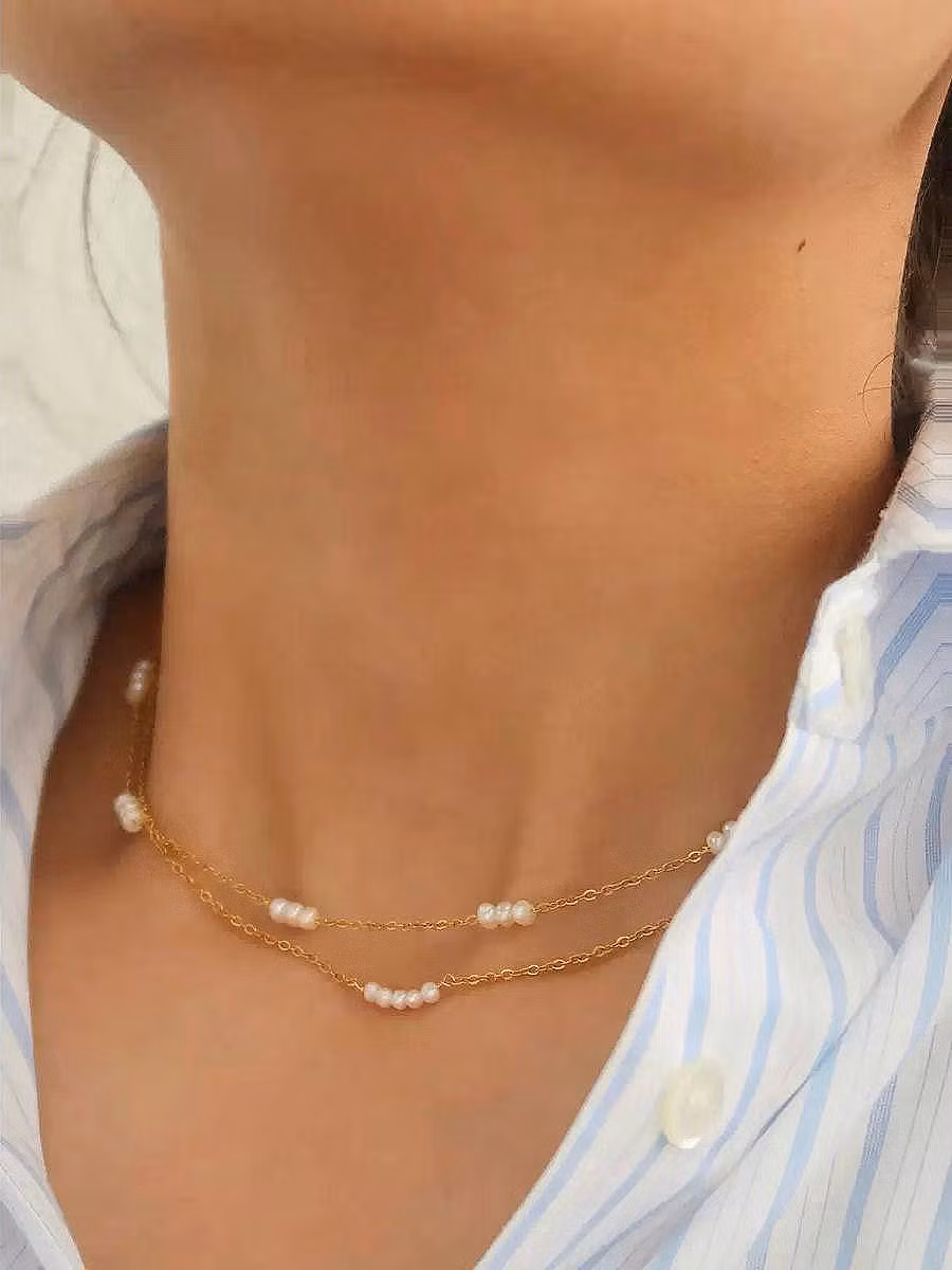 Halsband i högpolerat rostfritt stål som är PVD-pläterat med 18K guld. Tidlöst smycke tillverkat i ett vattentåligt, allergivänligt och slitstarkt material som håller dem fina länge. Bada, duscha och träna utan att oroa dig för att de ska tappa färg.