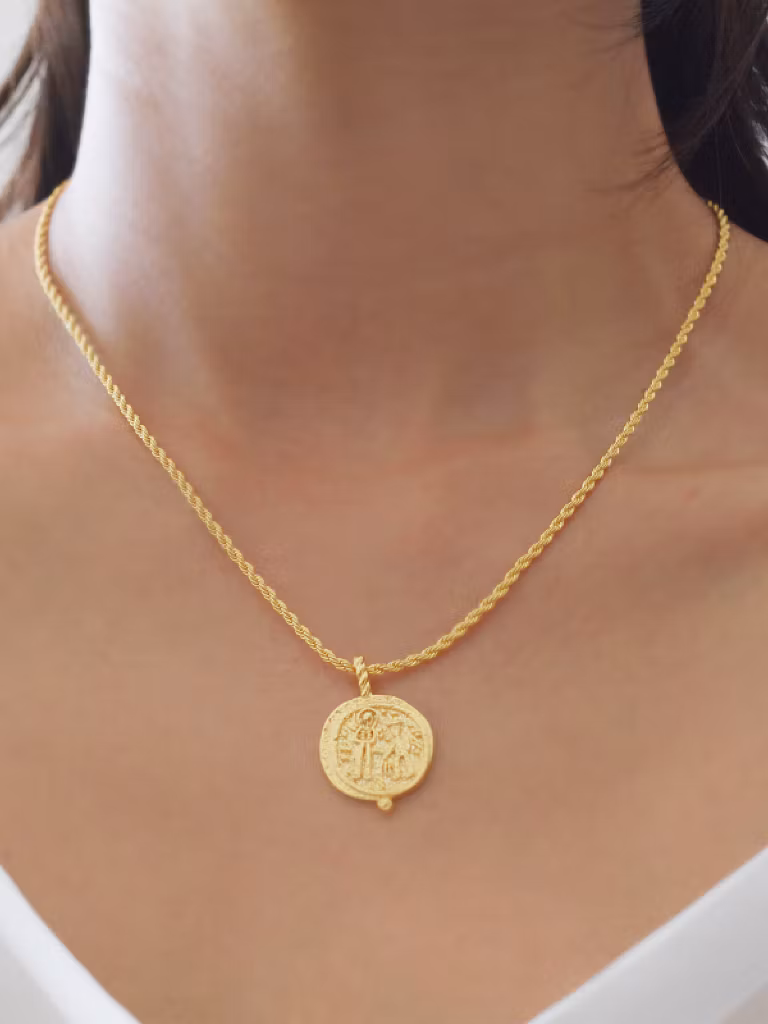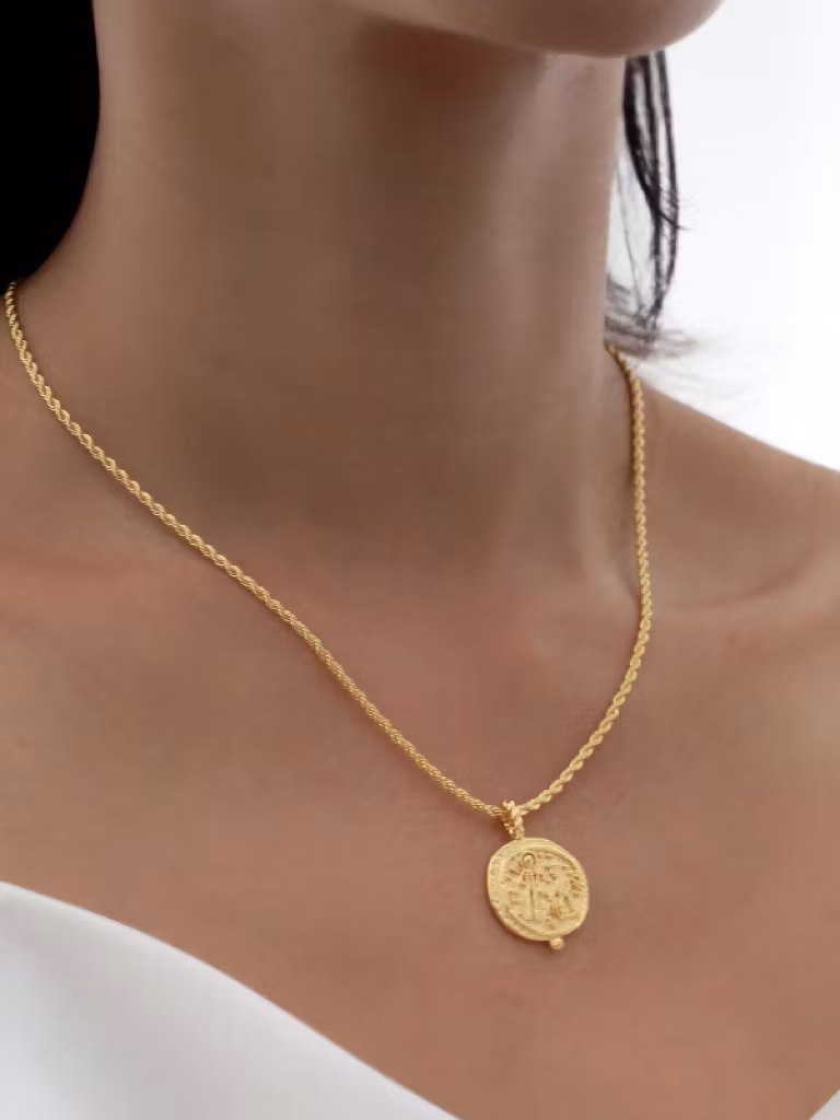 Kedjehalsband i guldfärgad metall med hänge i form av ett märkeshänge. Ett stilrent halsband med minimalistisk design som passar till alla tillfällen.ꔷ INFORMATION