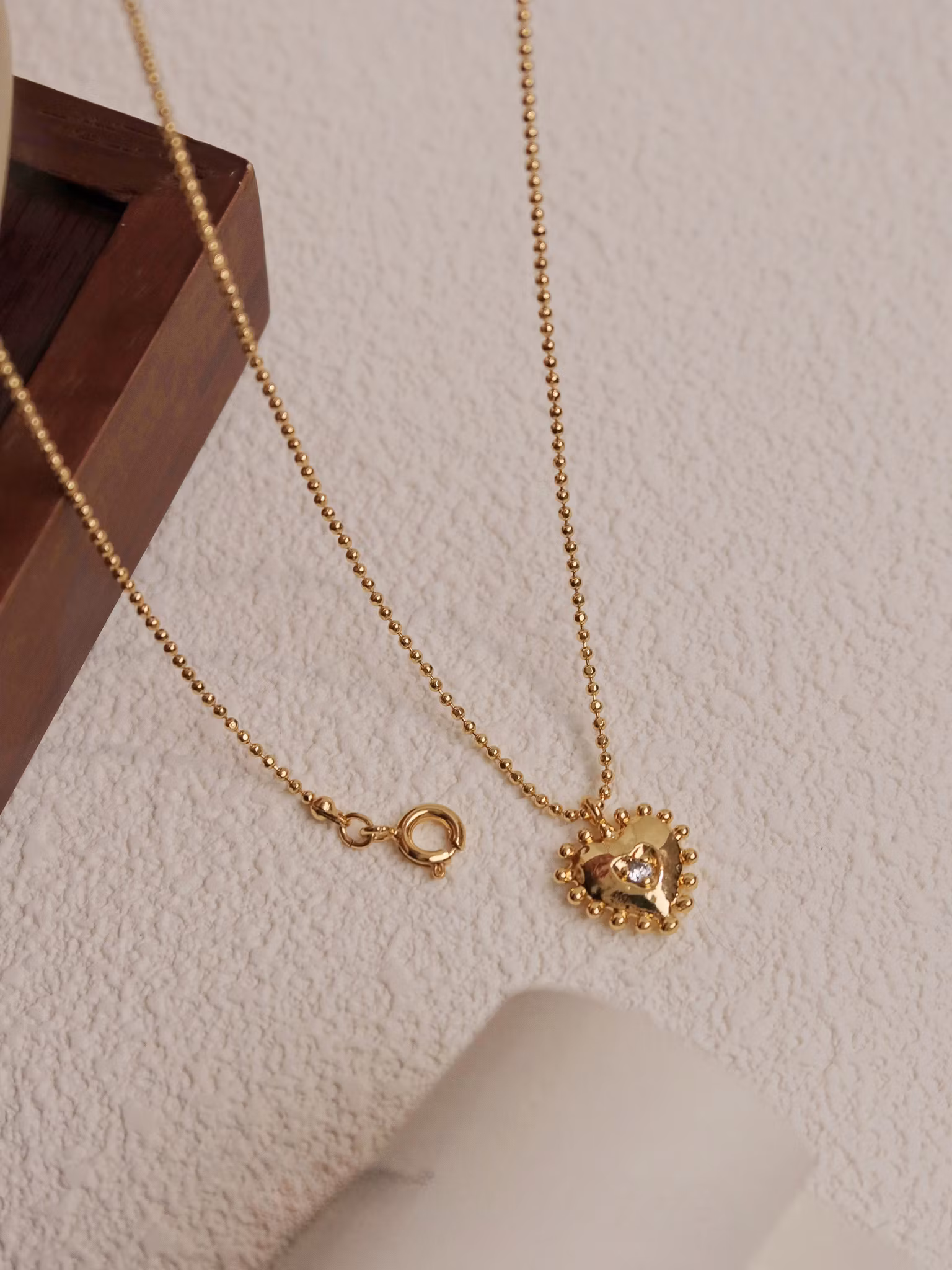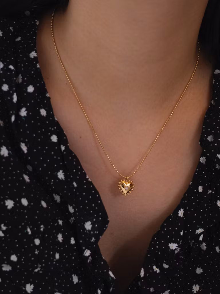 Halsband i 18K guldpläterad koppar med hänge i form av ett hjärta som är dekorerat med små Cubic Zirconia stenar. Ett enkelt och stilrent halsband med klassisk hänge som passar till alla tillfällen