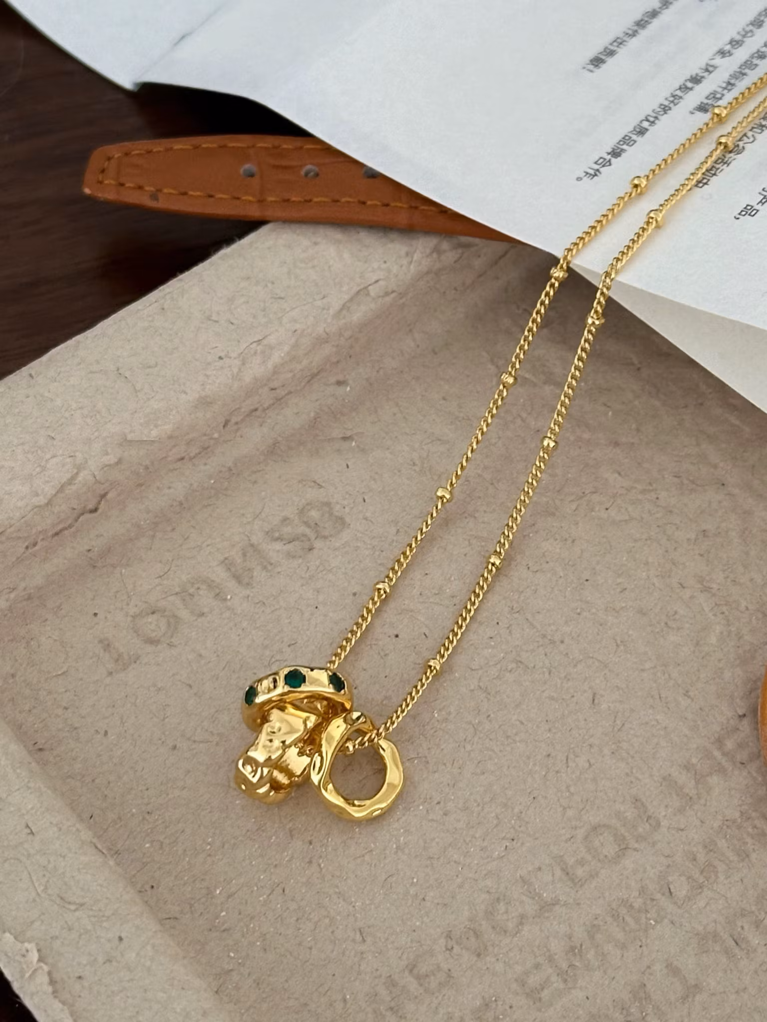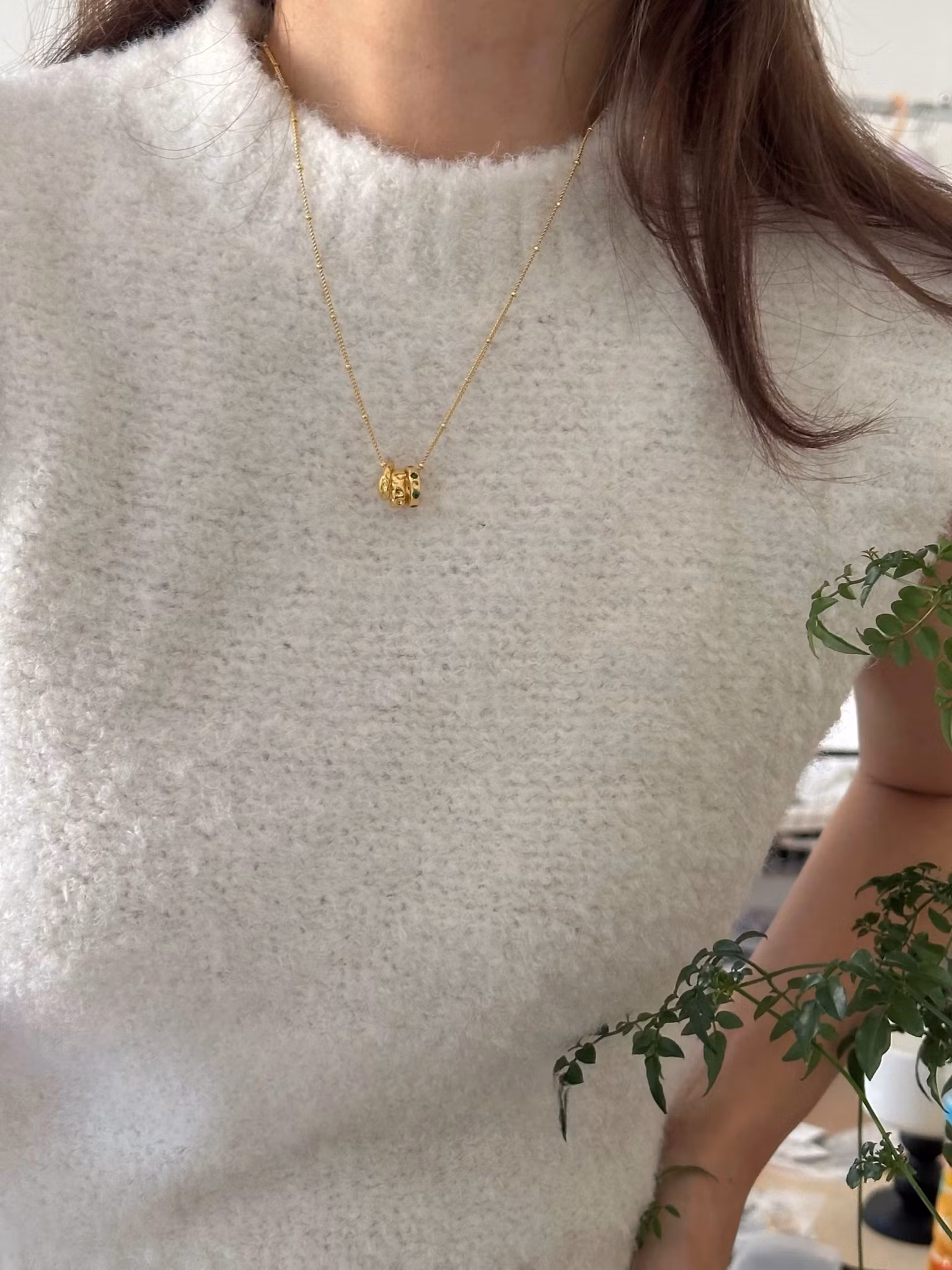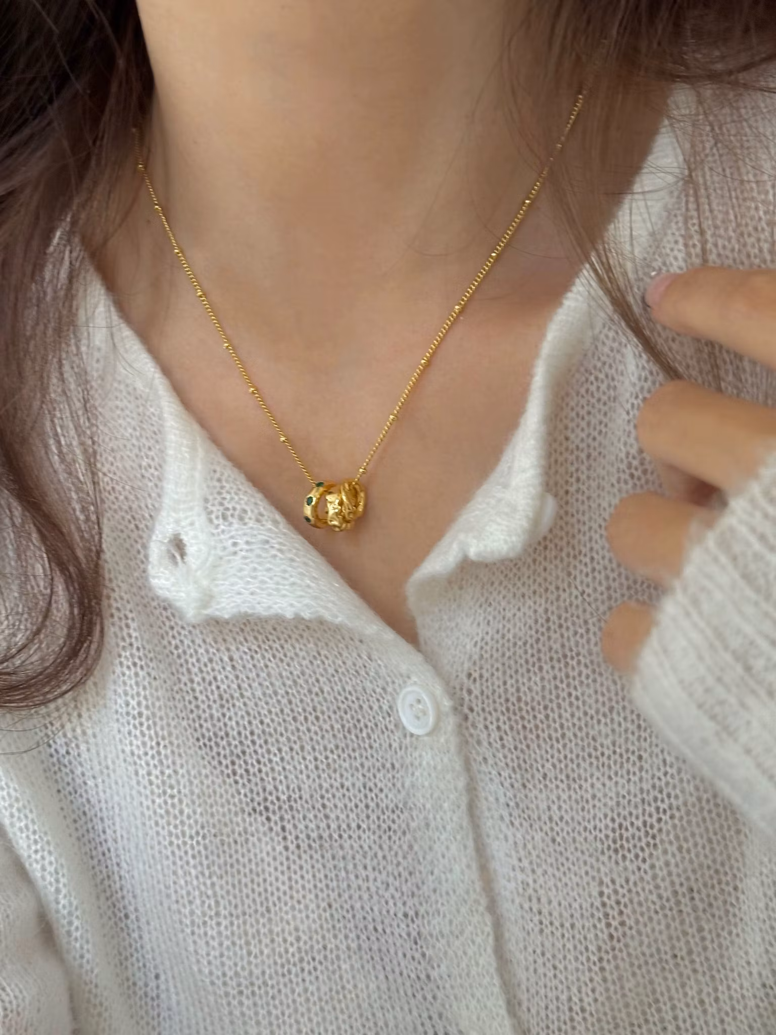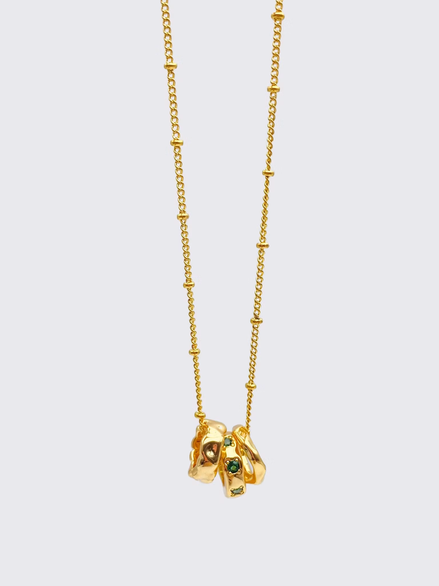 Halsband i 18K guldfärgad metall med tre cirklar hänge, Hänget är avtagbart .Ett stilrent halsband med skimrig detalj.
