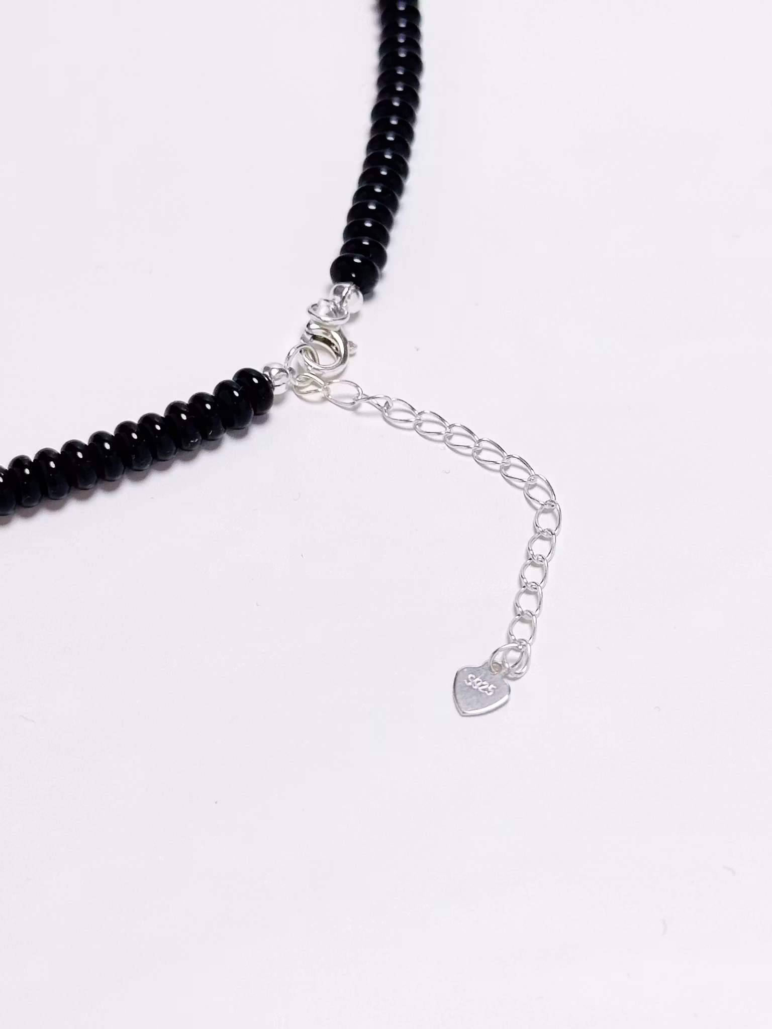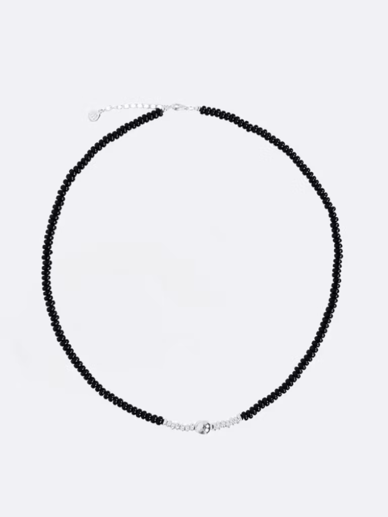 Halsband med svart onyx. Ett modern sterling silver halsband med svarta onyxpärlor. Halsbandet går att klä upp och klä ner och passar därför vardag som fest!