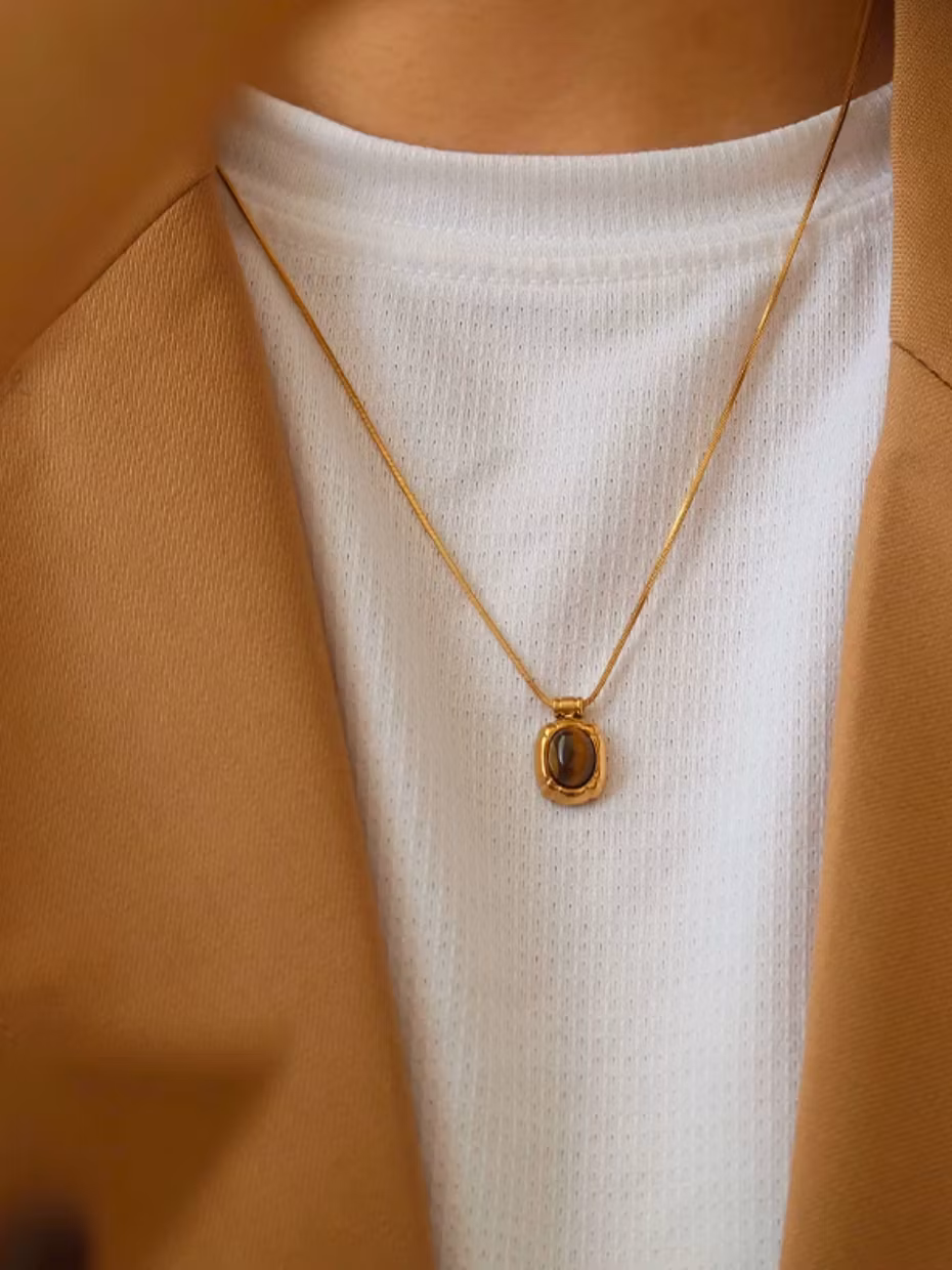 Halsband i högpolerat rostfritt stål som är PVD-pläterat med 18K guld. Tidlöst smycke tillverkat i ett vattentåligt, allergivänligt och slitstarkt material som håller dem fina länge. Bada, duscha och träna utan att oroa dig för att de ska tappa färg.