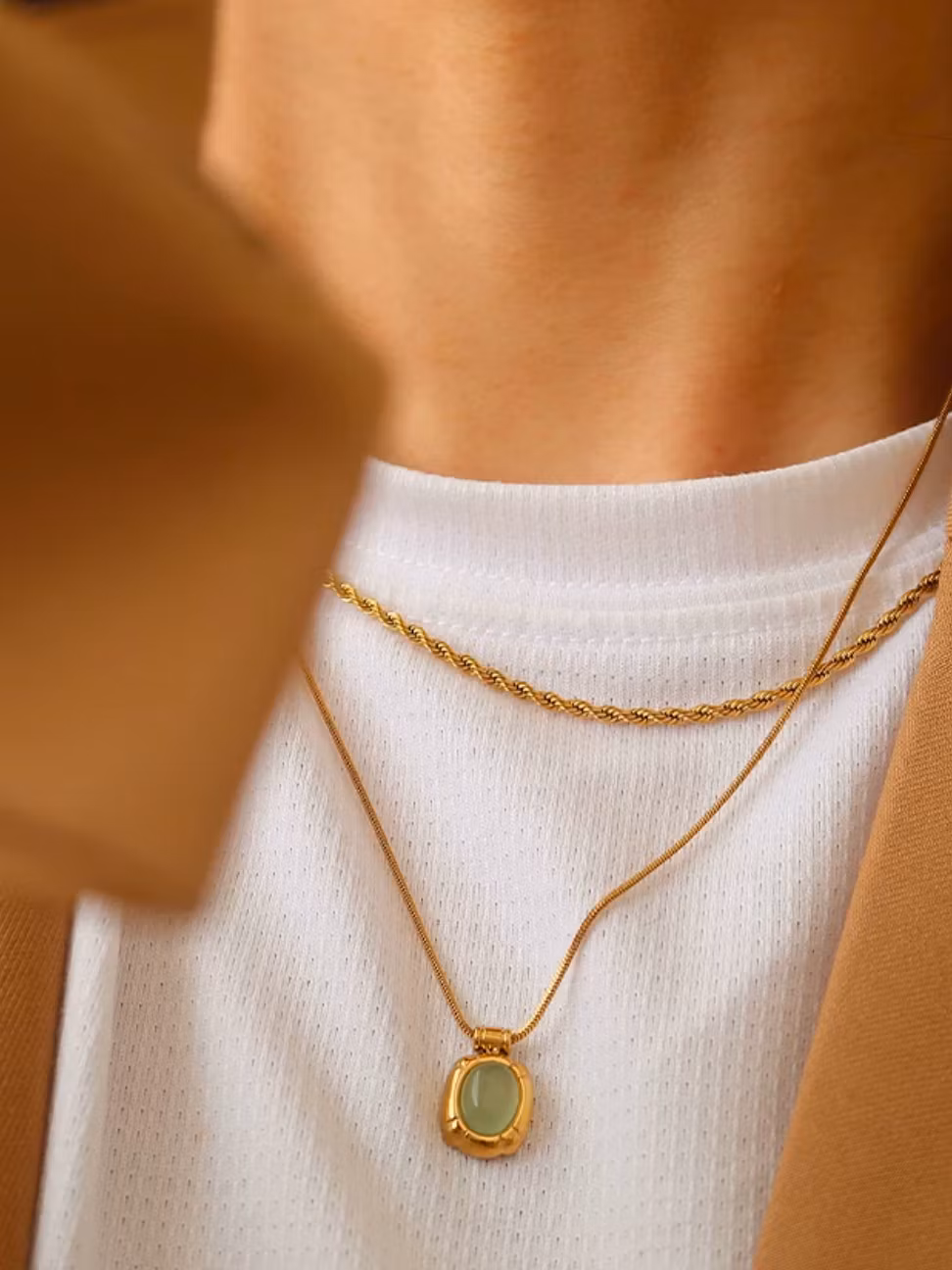 Halsband i högpolerat rostfritt stål som är PVD-pläterat med 18K guld. Tidlöst smycke tillverkat i ett vattentåligt, allergivänligt och slitstarkt material som håller dem fina länge. Bada, duscha och träna utan att oroa dig för att de ska tappa färg.