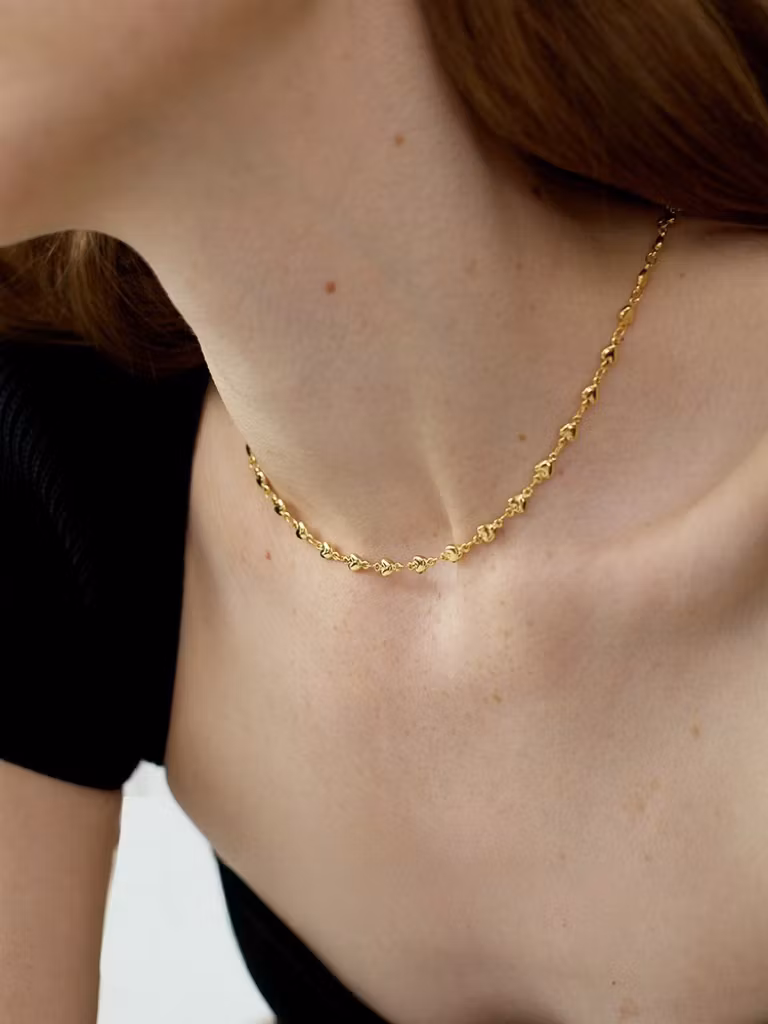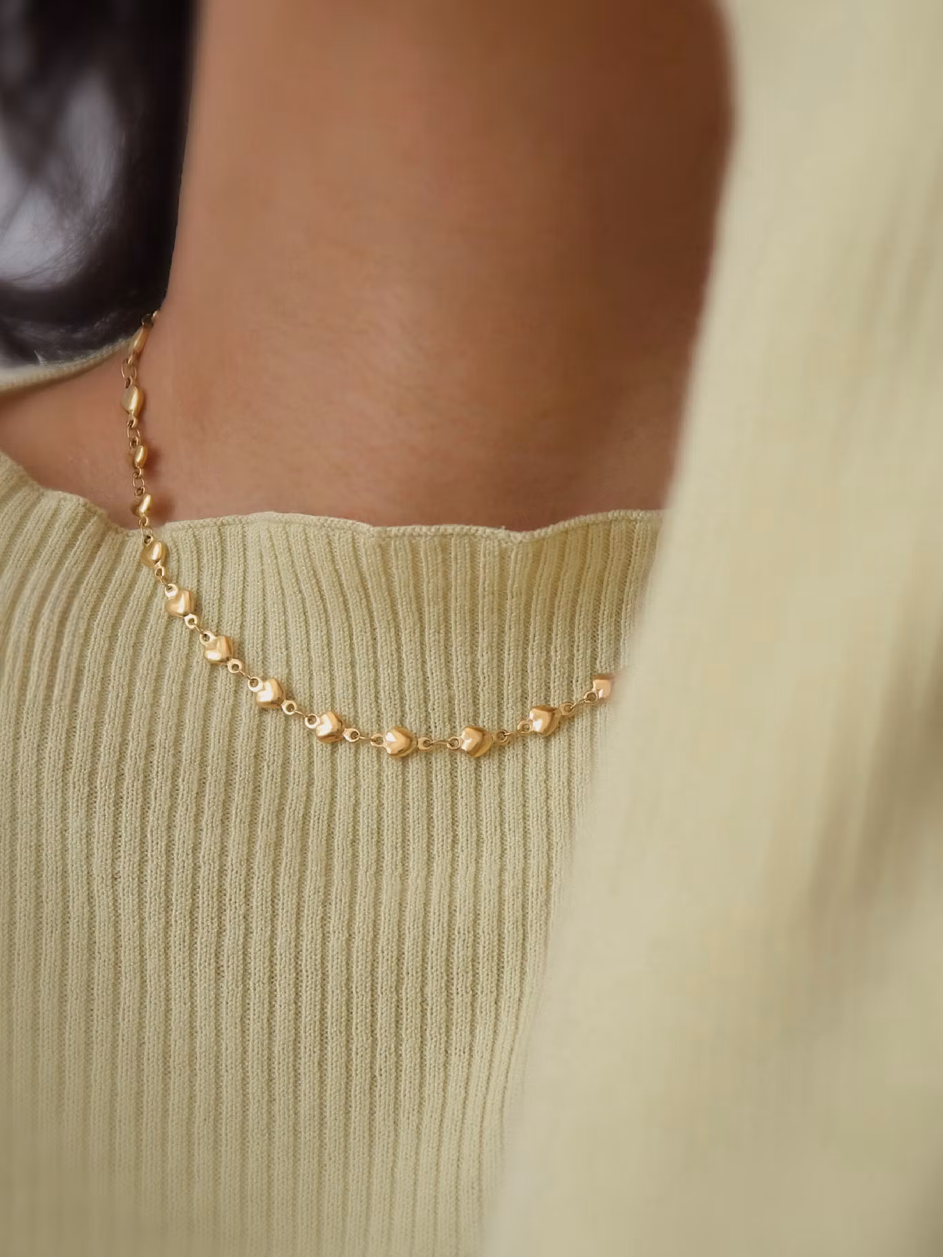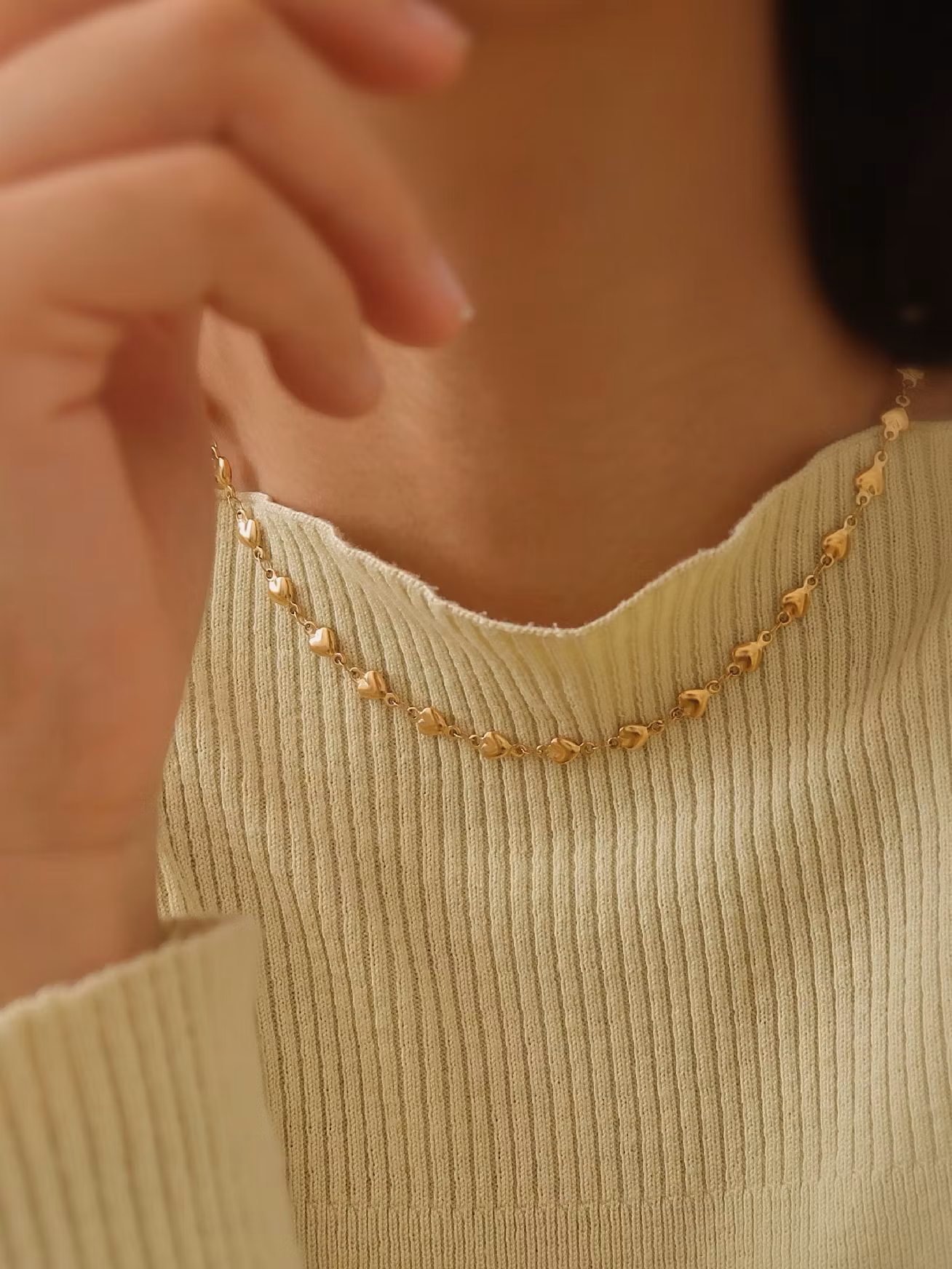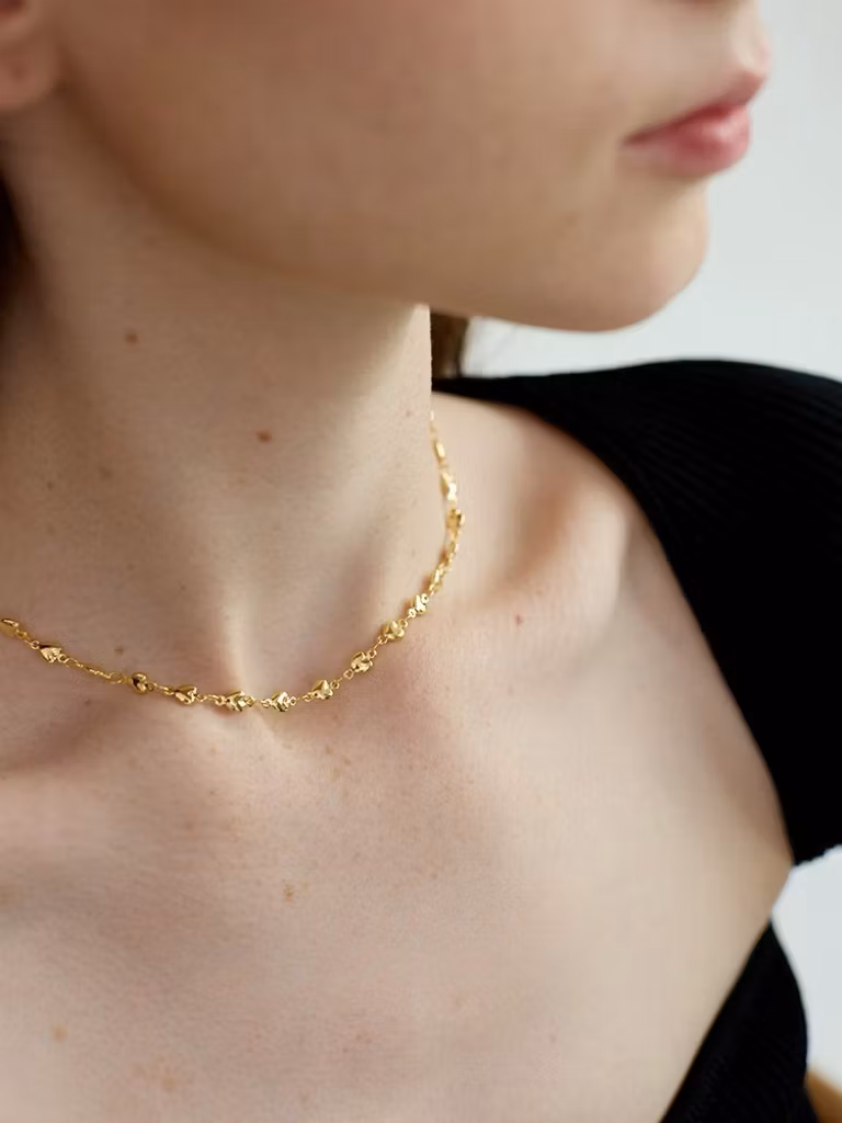 Halsband i högpolerat rostfritt stål som är PVD-pläterat med 18K guld. Tidlöst smycke tillverkat i ett vattentåligt, allergivänligt och slitstarkt material som håller dem fina länge. Bada, duscha och träna utan att oroa dig för att de ska tappa färg.