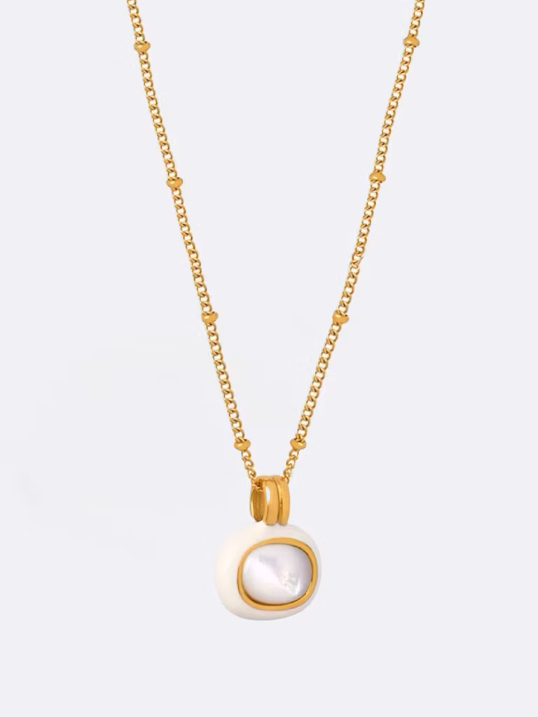 Halsband i högpolerat rostfritt stål som är PVD-pläterat med 18K guld. Tidlöst smycke tillverkat i ett vattentåligt, allergivänligt och slitstarkt material som håller dem fina länge. Bada, duscha och träna utan att oroa dig för att de ska tappa färg.