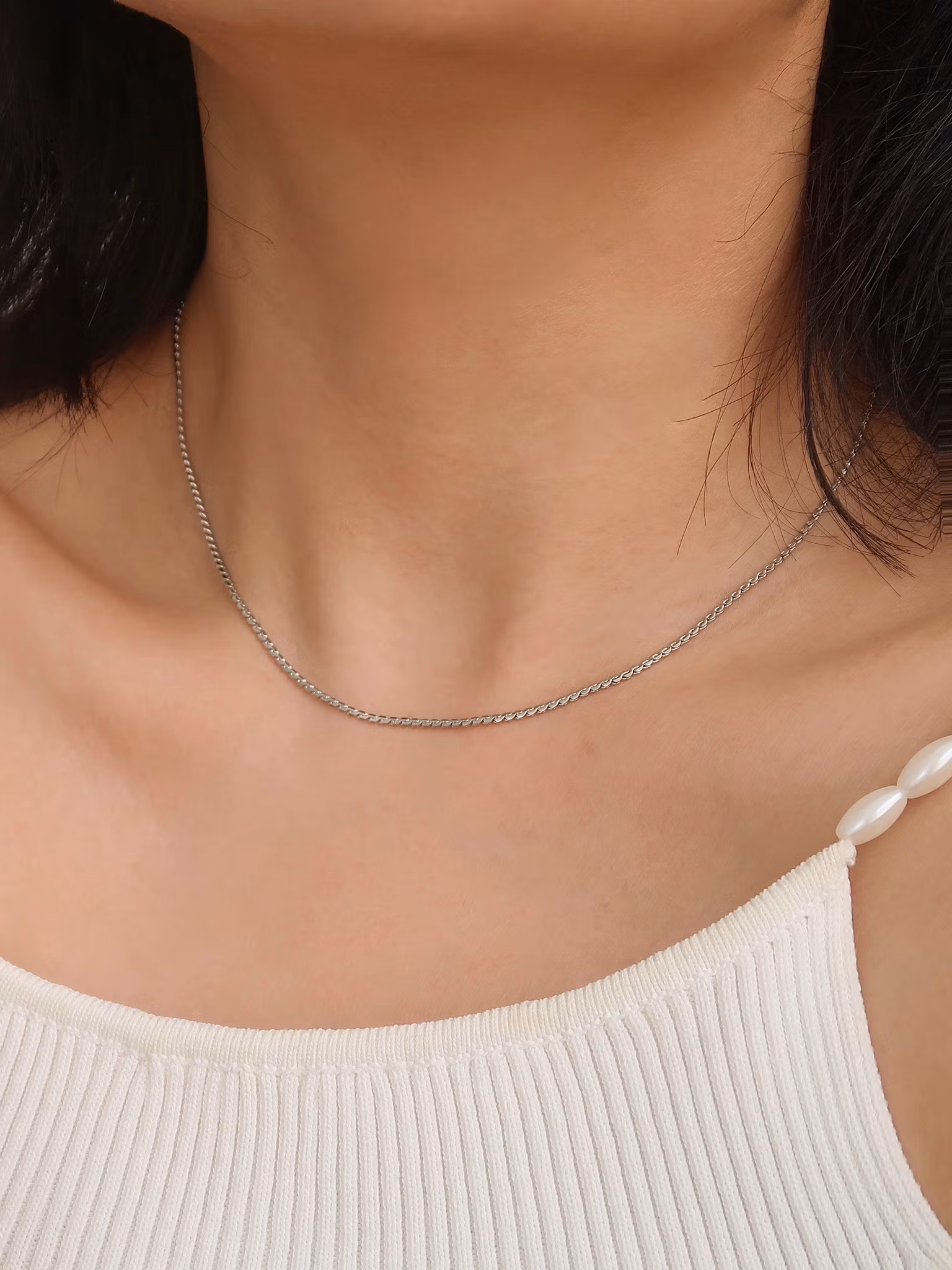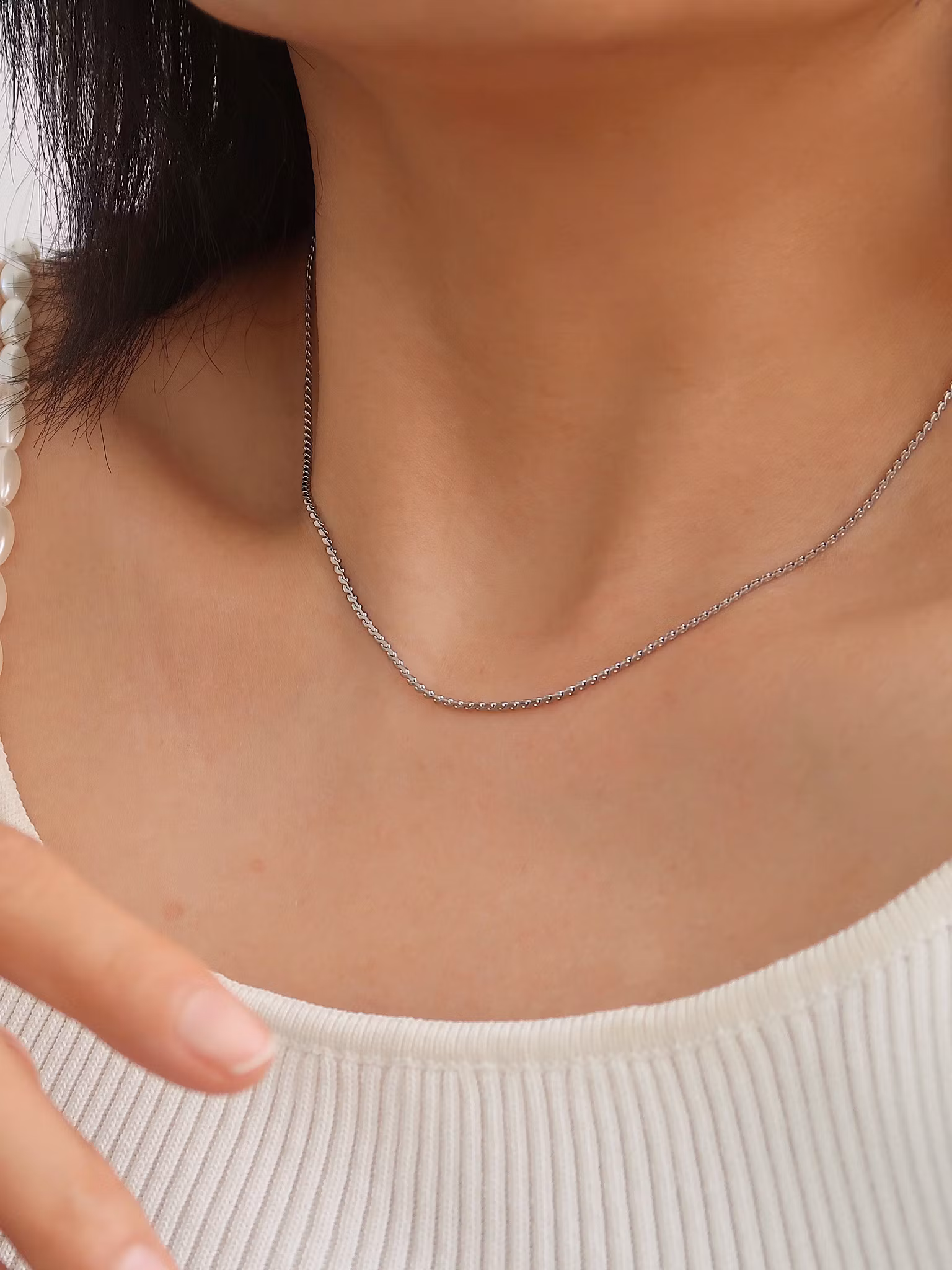 Halsband i högpolerat rostfritt stål som är PVD-pläterat . Tidlöst smycke tillverkat i ett vattentåligt, allergivänligt och slitstarkt material som håller dem fina länge. Bada, duscha och träna utan att oroa dig för att de ska tappa färg.