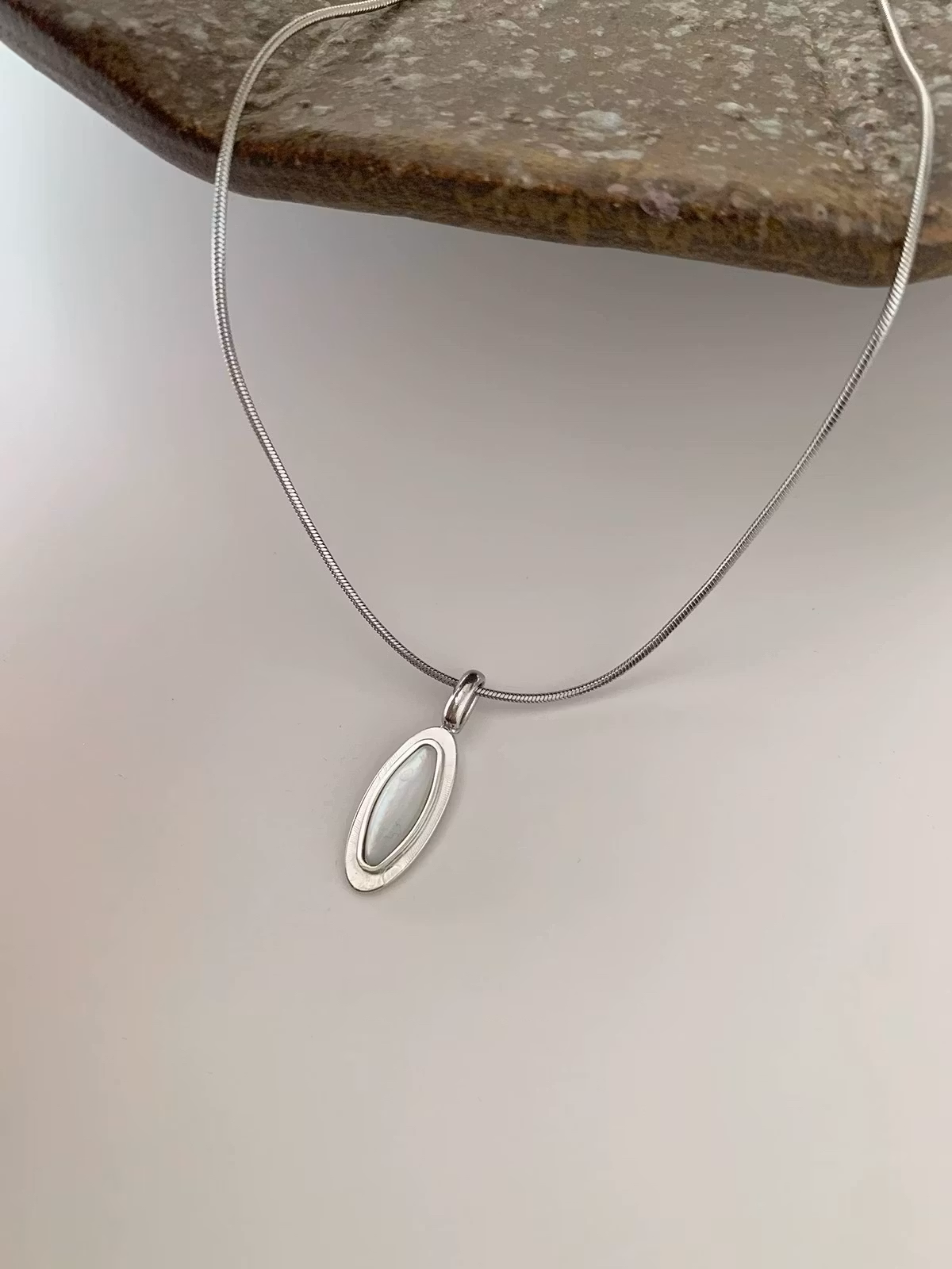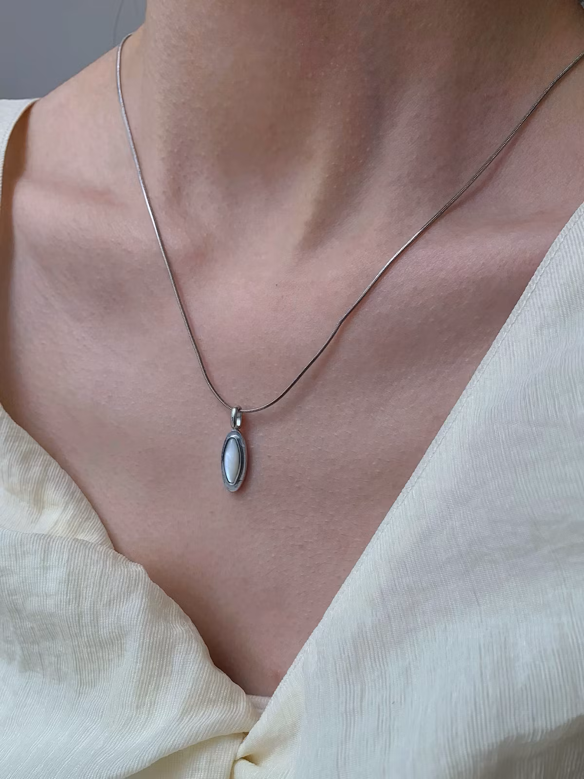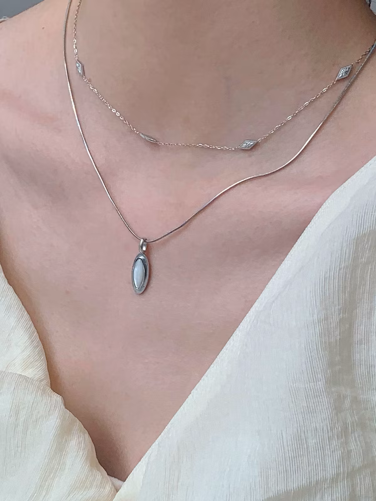 Tunt kedjehalsband i högpolerat rostfritt stål som är PVD-pläterat , med en stor hängande.