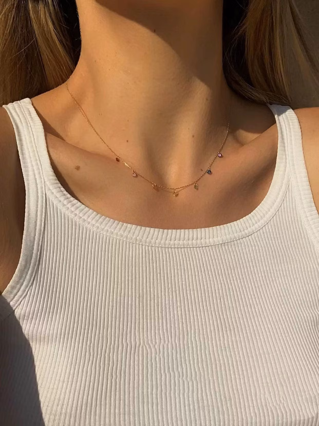 Halsband i högpolerat rostfritt stål som är PVD-pläterat med 18K guld. Tidlöst smycke tillverkat i ett vattentåligt, allergivänligt och slitstarkt material som håller dem fina länge. Bada, duscha och träna utan att oroa dig för att de ska tappa färg.