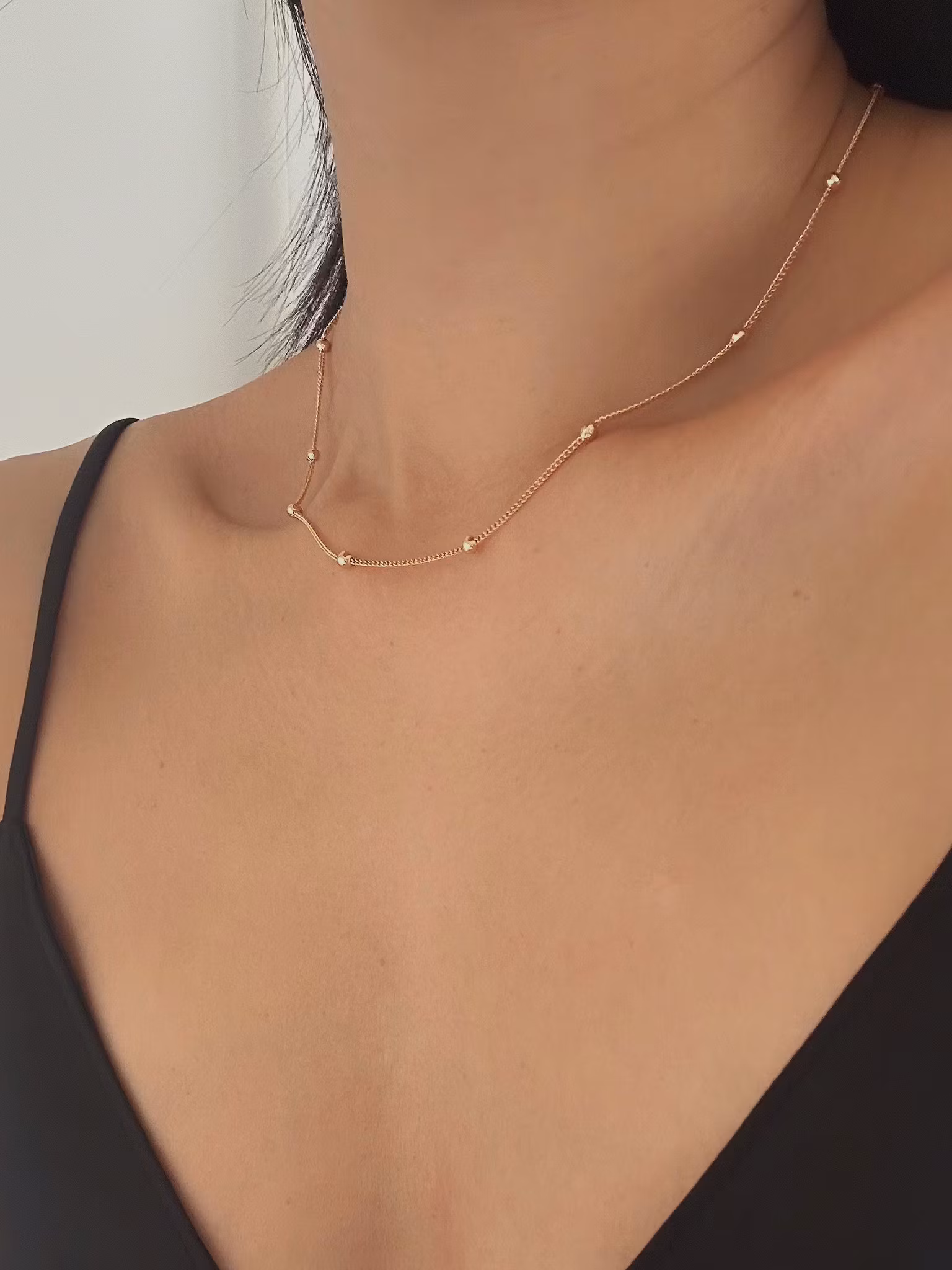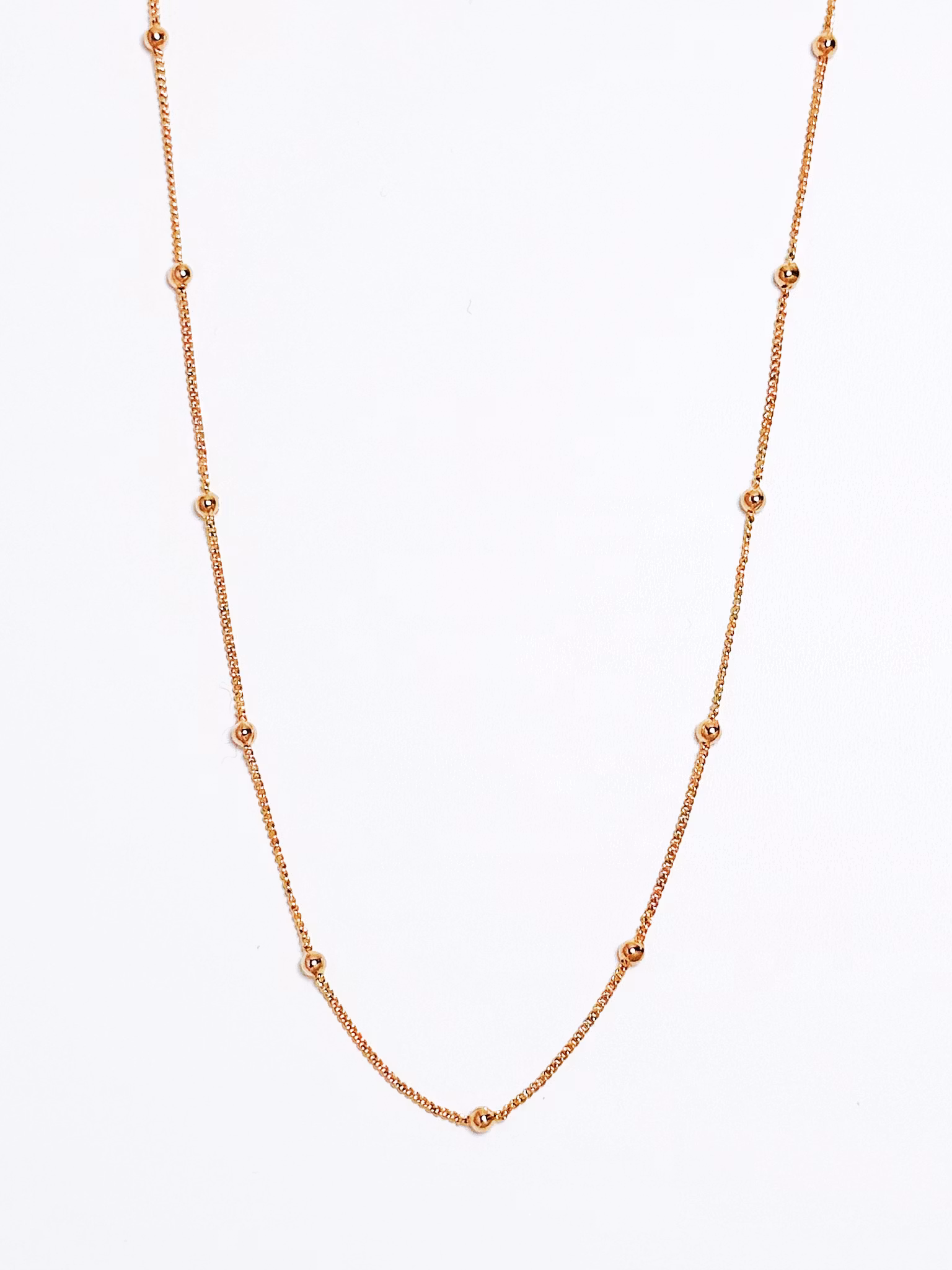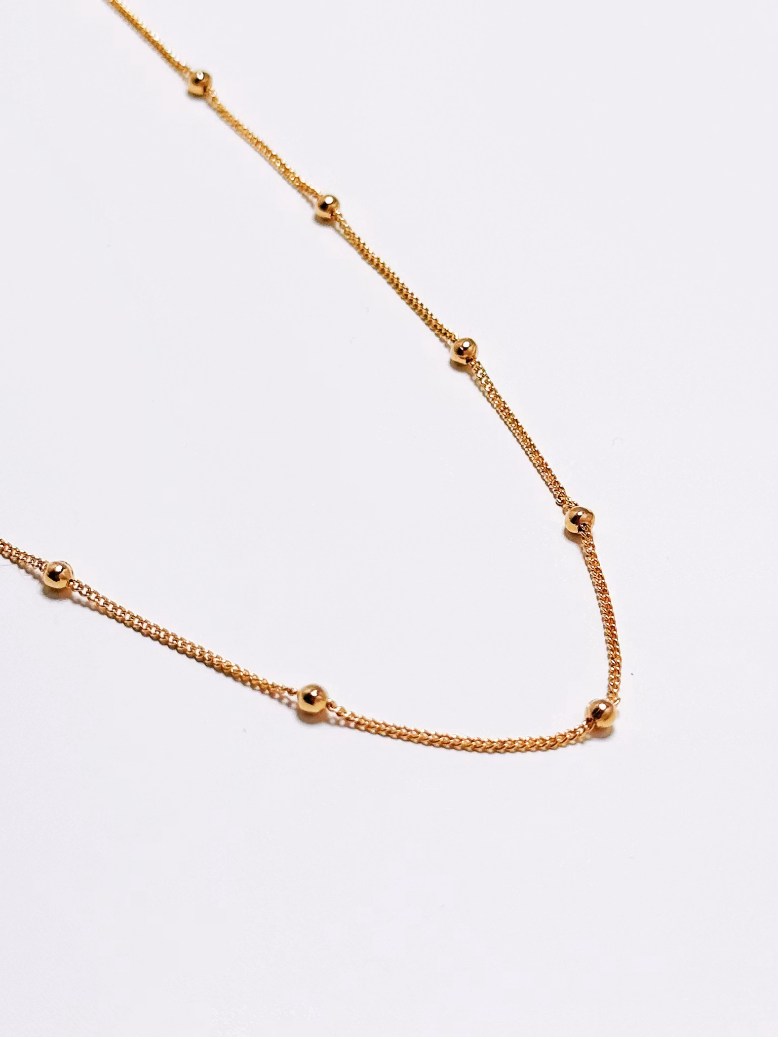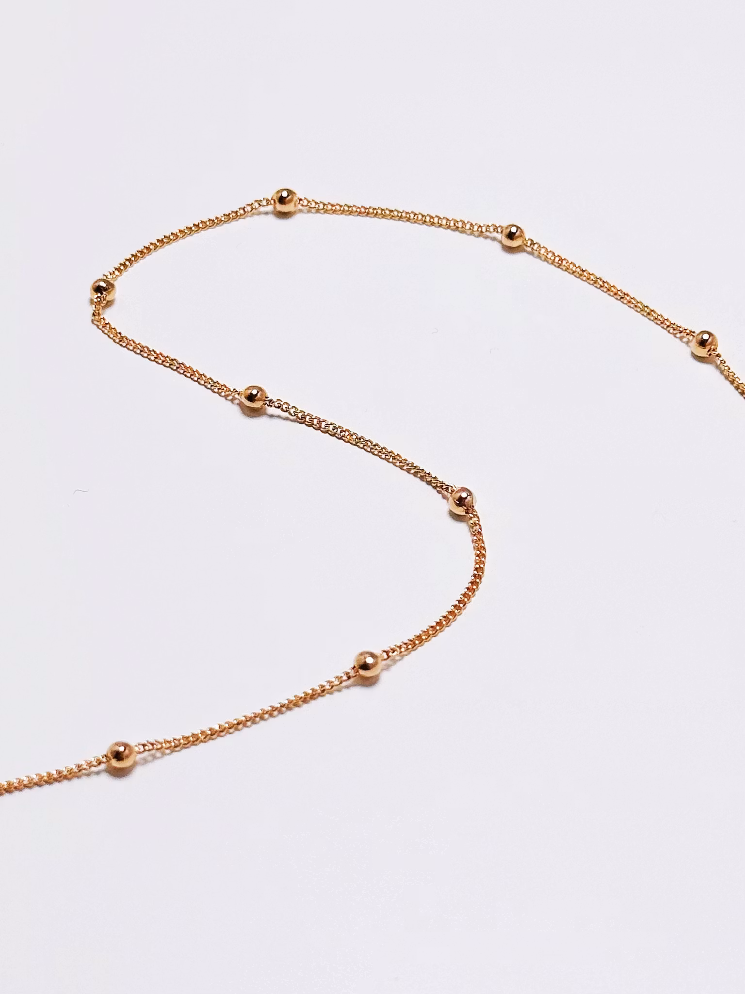 En länk med små kulor som är vacker att använda bara som den är. Perfekt halskedja till vardags som även går att kompletteras med berlocker eller kombinera med andra halsband för en lager-på-lager look.