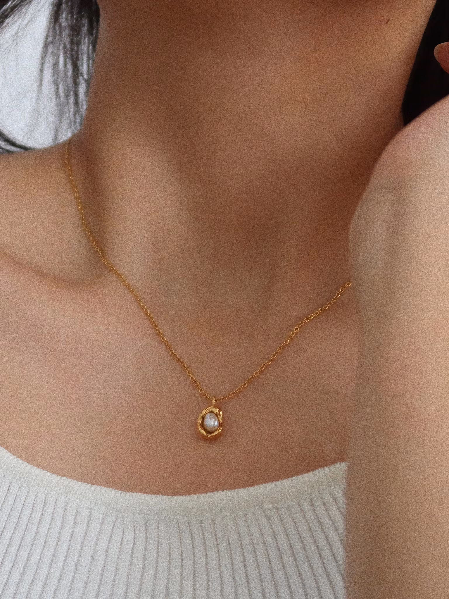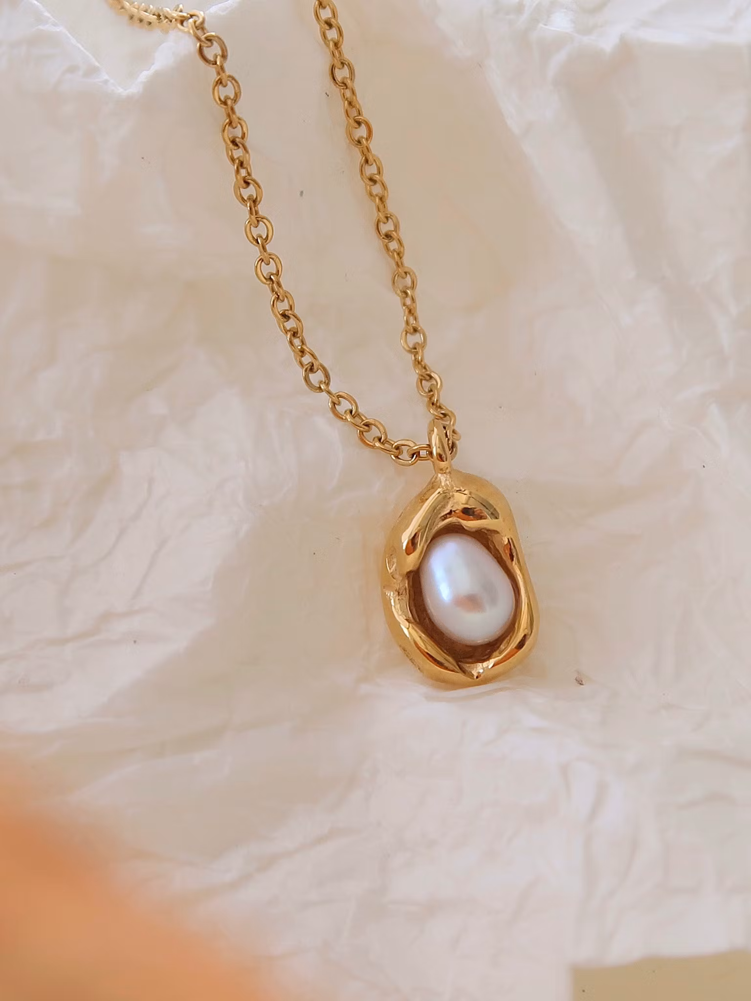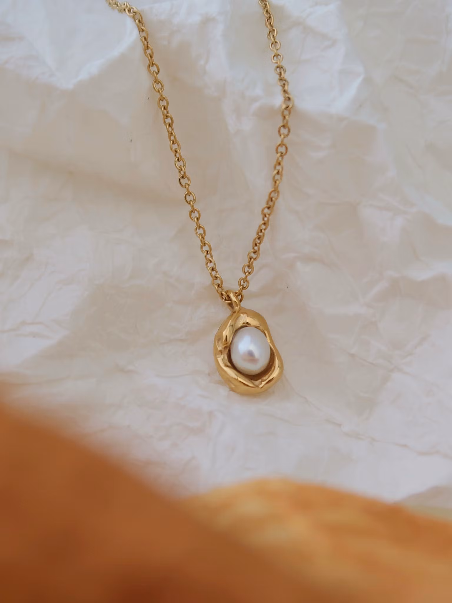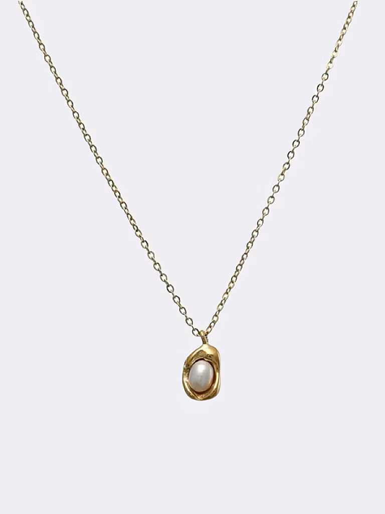 Halsband i högpolerat rostfritt stål som är PVD-pläterat med 18K guld. Tidlöst smycke tillverkat i ett vattentåligt, allergivänligt och slitstarkt material som håller dem fina länge. Bada, duscha och träna utan att oroa dig för att de ska tappa färg.