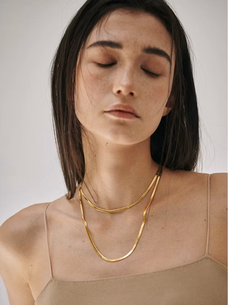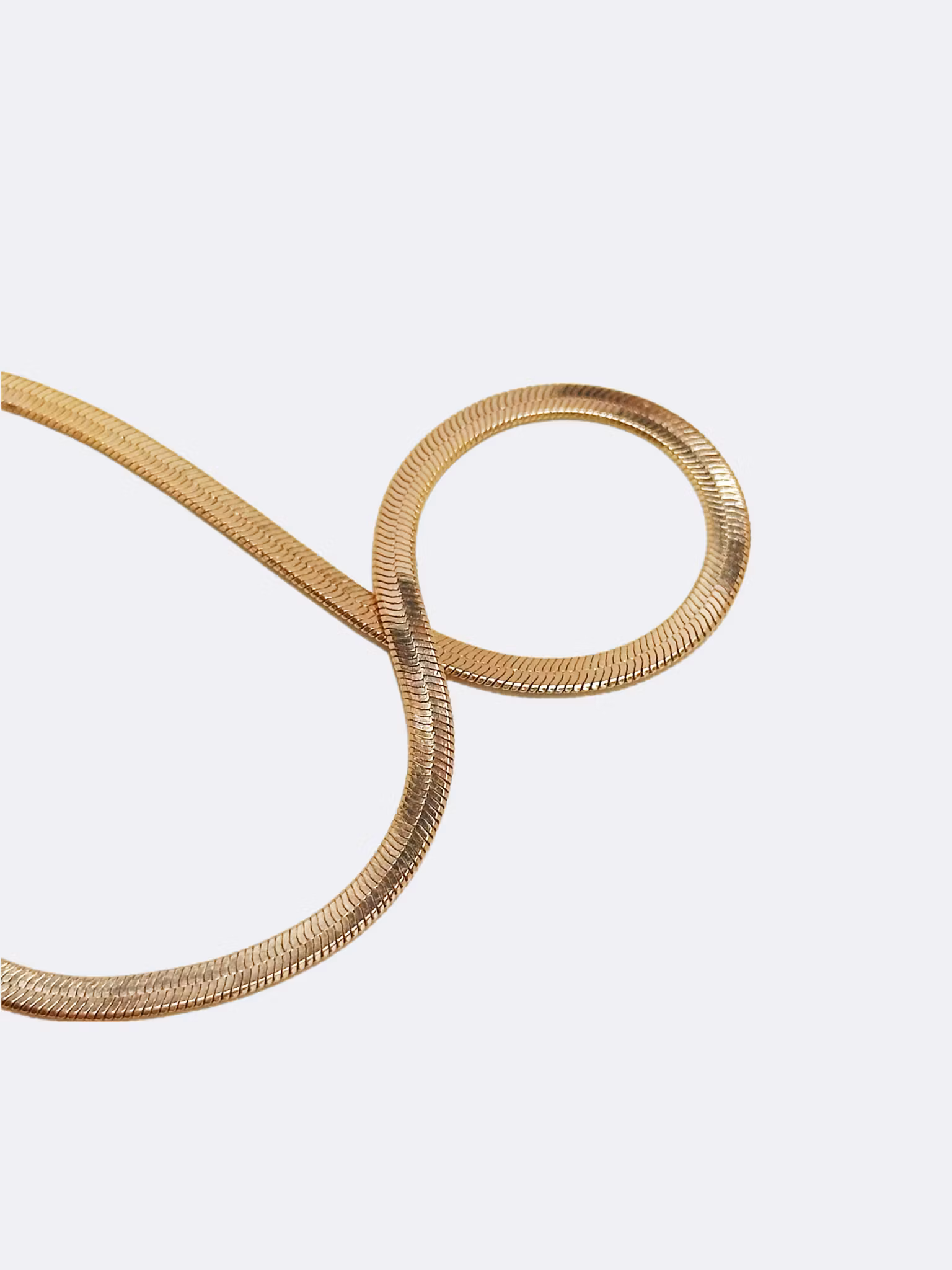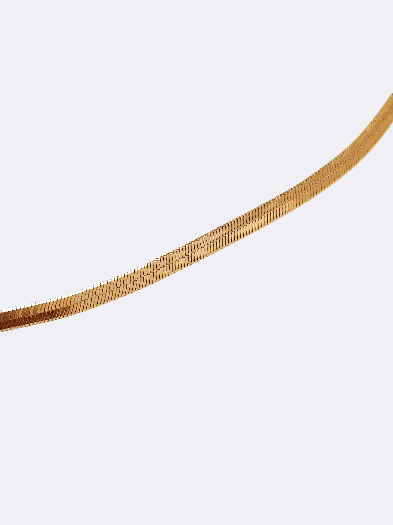 Halsband i högpolerat rostfritt stål som är PVD-pläterat med 18K guld. Tidlöst smycke tillverkat i ett vattentåligt, allergivänligt och slitstarkt material som håller dem fina länge. Bada, duscha och träna utan att oroa dig för att de ska tappa färg.