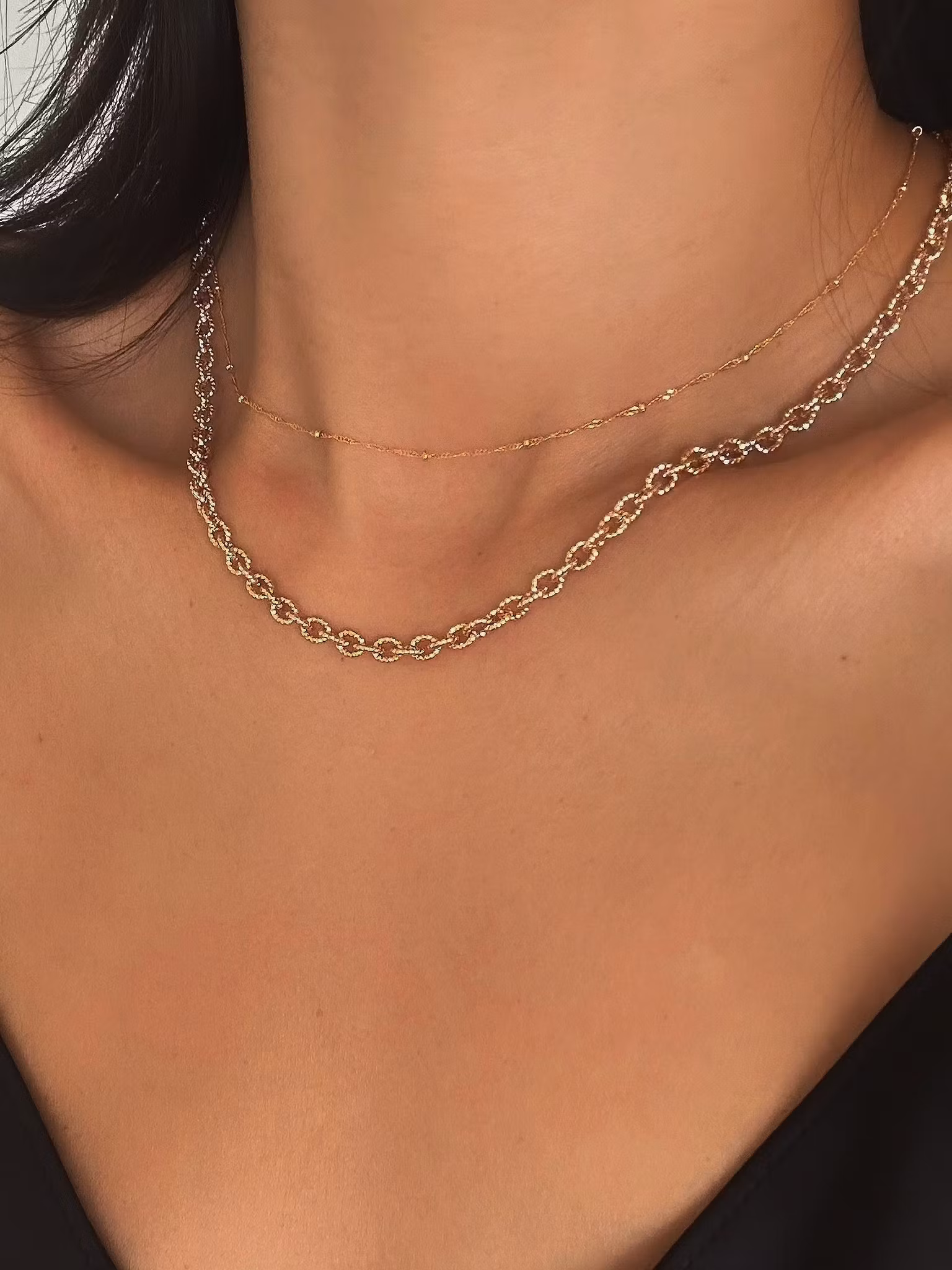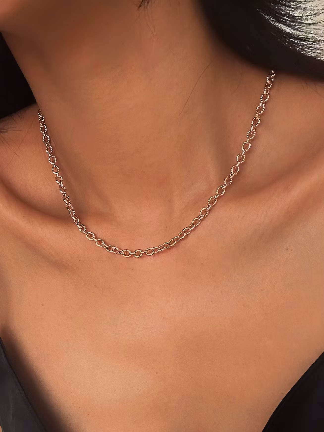 Kedjehalsband i runda länkar i metall. Ett stilrent kedjehalsband med minimalistisk design som passar både till vardags och fest. Kombinera gärna med andra halsband för en lager-på-lager look.