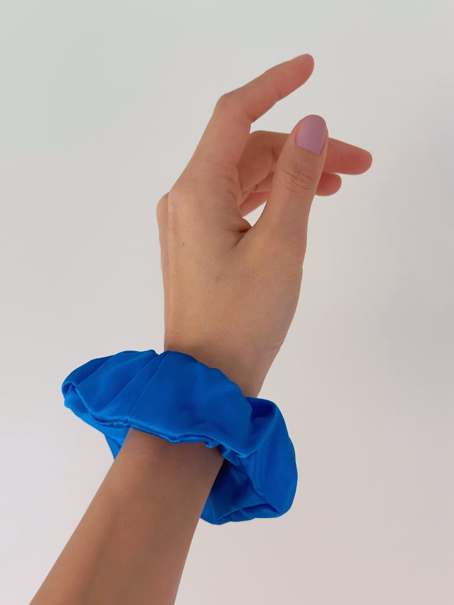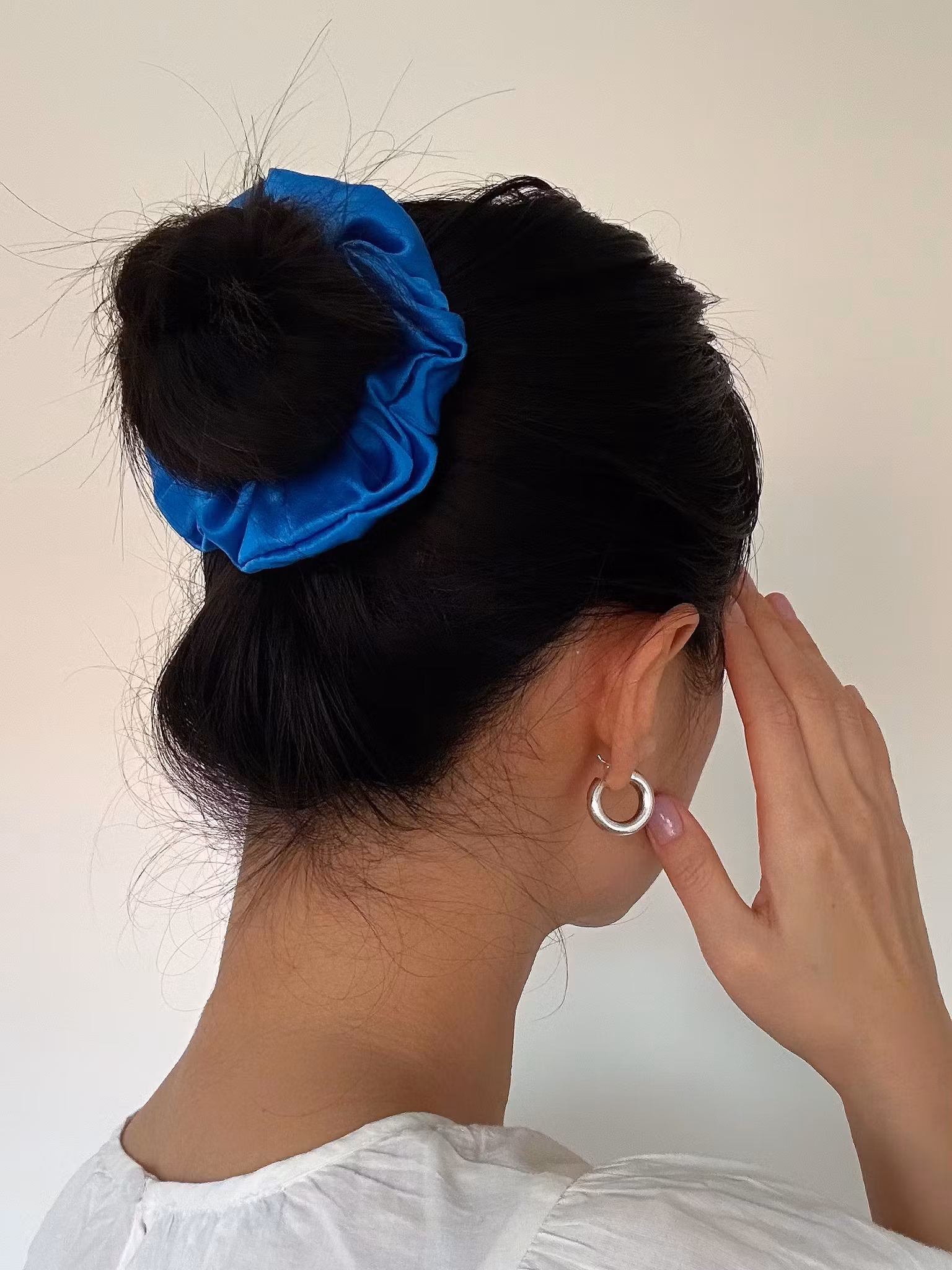 Vacker och tidlös scrunchie av 100 % mullbärssilke med en vikt på 19 momme - vilket är ett mått på silkets kvalitet och tjocklek. Ett smycke för håret utan att skava på det yttre lagret vilket främjar friskt hår. Motverkar märken och avtryck under uppsättningar.