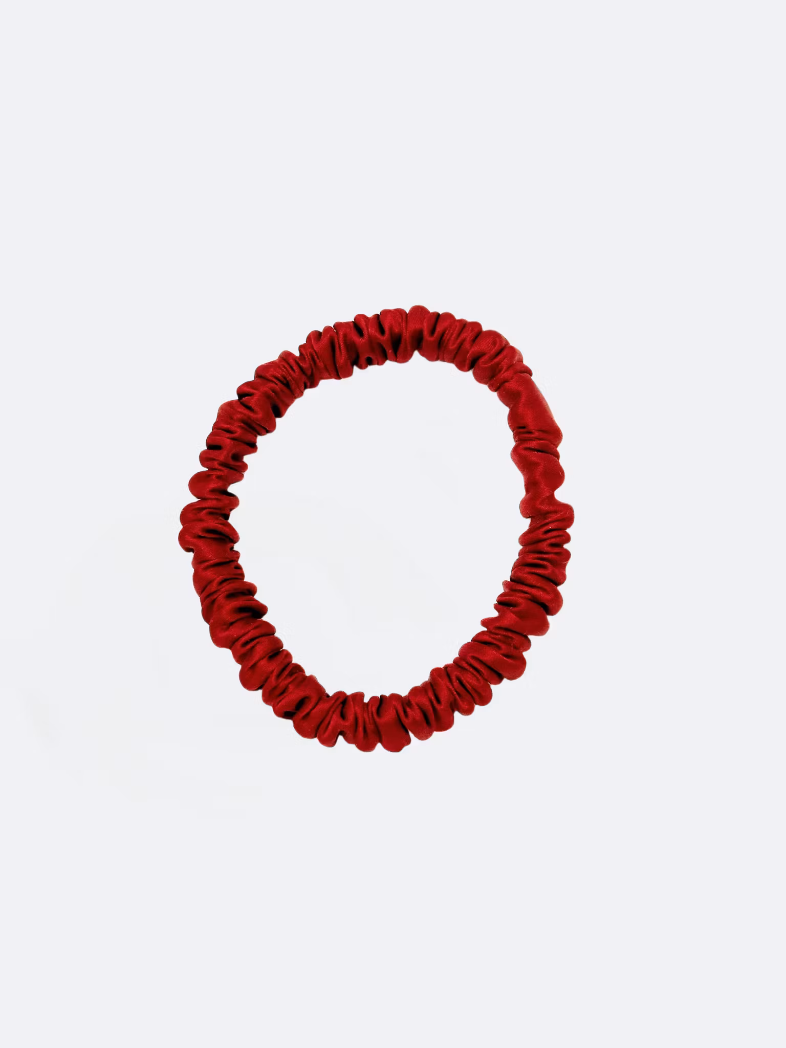 Mulberry Silk Skinny Scrunchies , Röd 1 cm