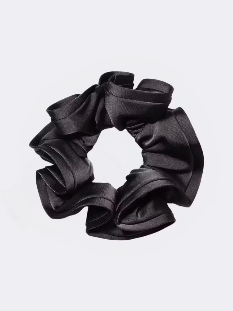 Stor svart scrunchie i glansig sidenimitation. Fin håraccessoar med mycket volym som passar perfekt till exempelvis en låg hästsvans eller knut.
