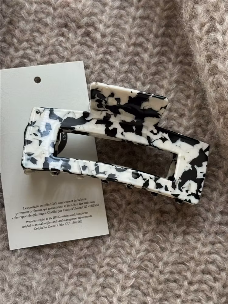 Hårklämma med klassisk design och marmorerat mönster. Hårklämman har sju piggar som enkelt fångar upp mycket hår och den mönstrade designen ger en fin detalj till din frisyr.