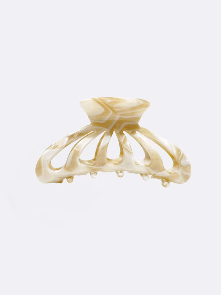 Hårklämma med skalform Ihålig design. Hårklämman har sex piggar som enkelt fångar upp mycket hår och den mönstrade designen ger en fin detalj till din frisyr.