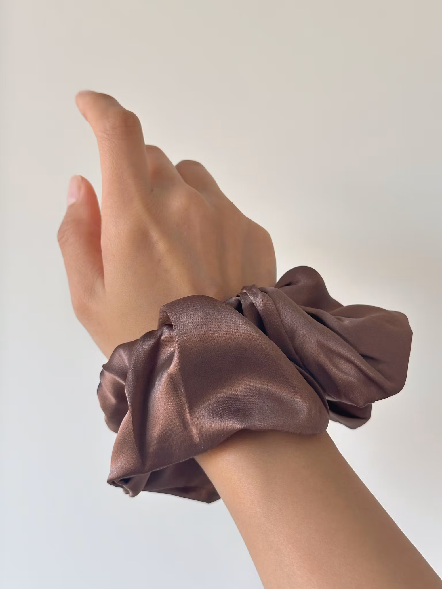 Mullbärssilke Scrunchie , brun 15cm