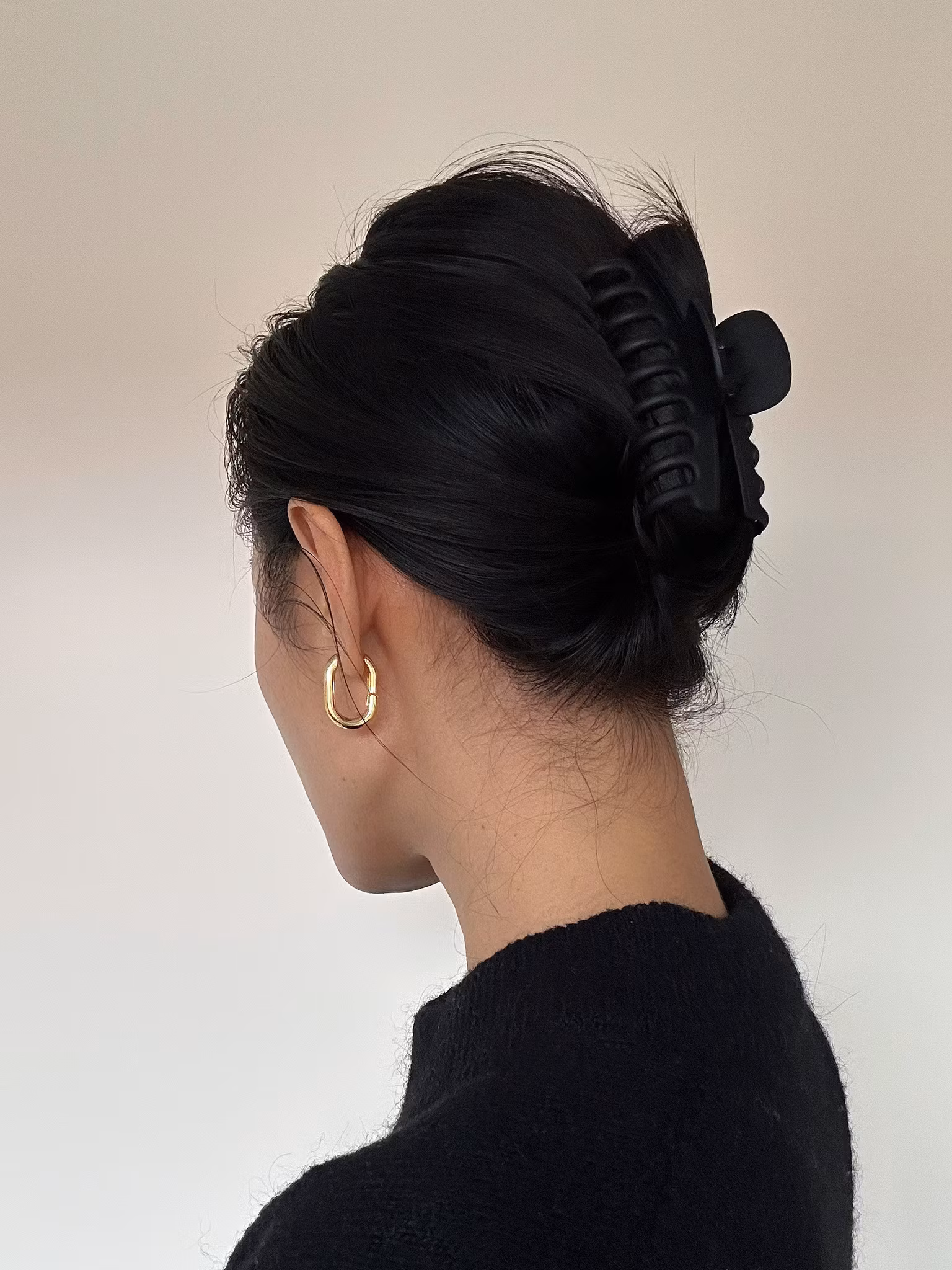 Avlång hårklämma i matt svart färg med tubformad design som klarar uppsättningar av tjockare eller mycket hår. Stilsäker håraccessoar i hälig färg som tillför det lilla extra till din frisyr och passar perfekt för en snabb och skonsamt uppsättning.