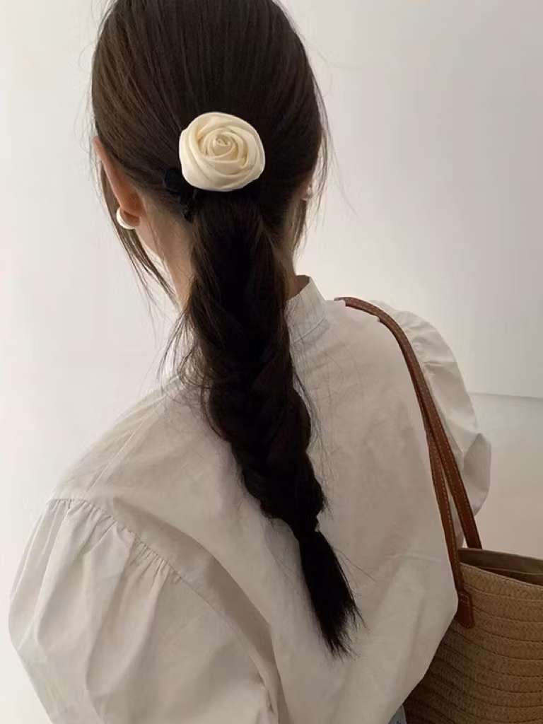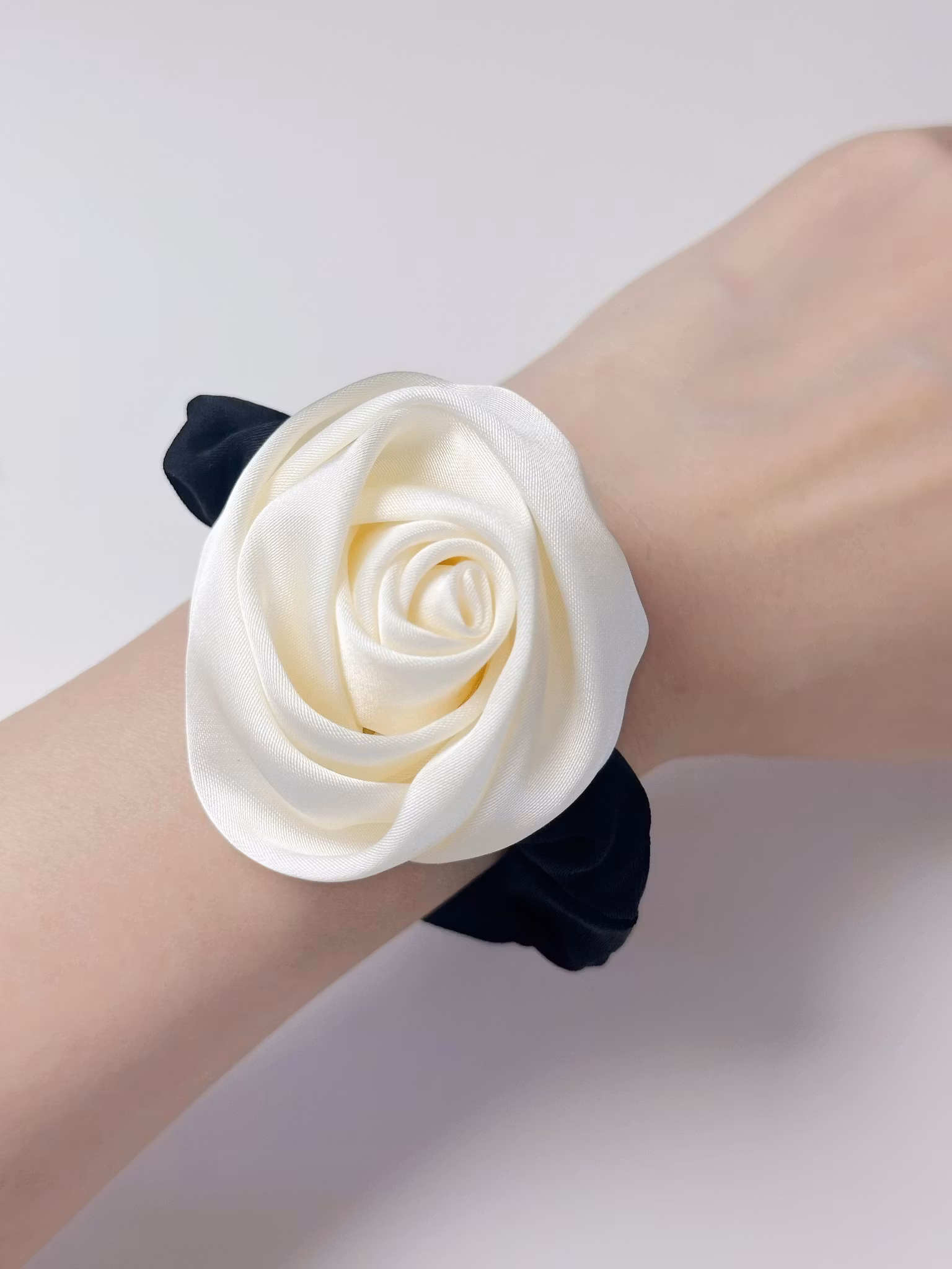 Scrunchie med ros i sidenimitation.