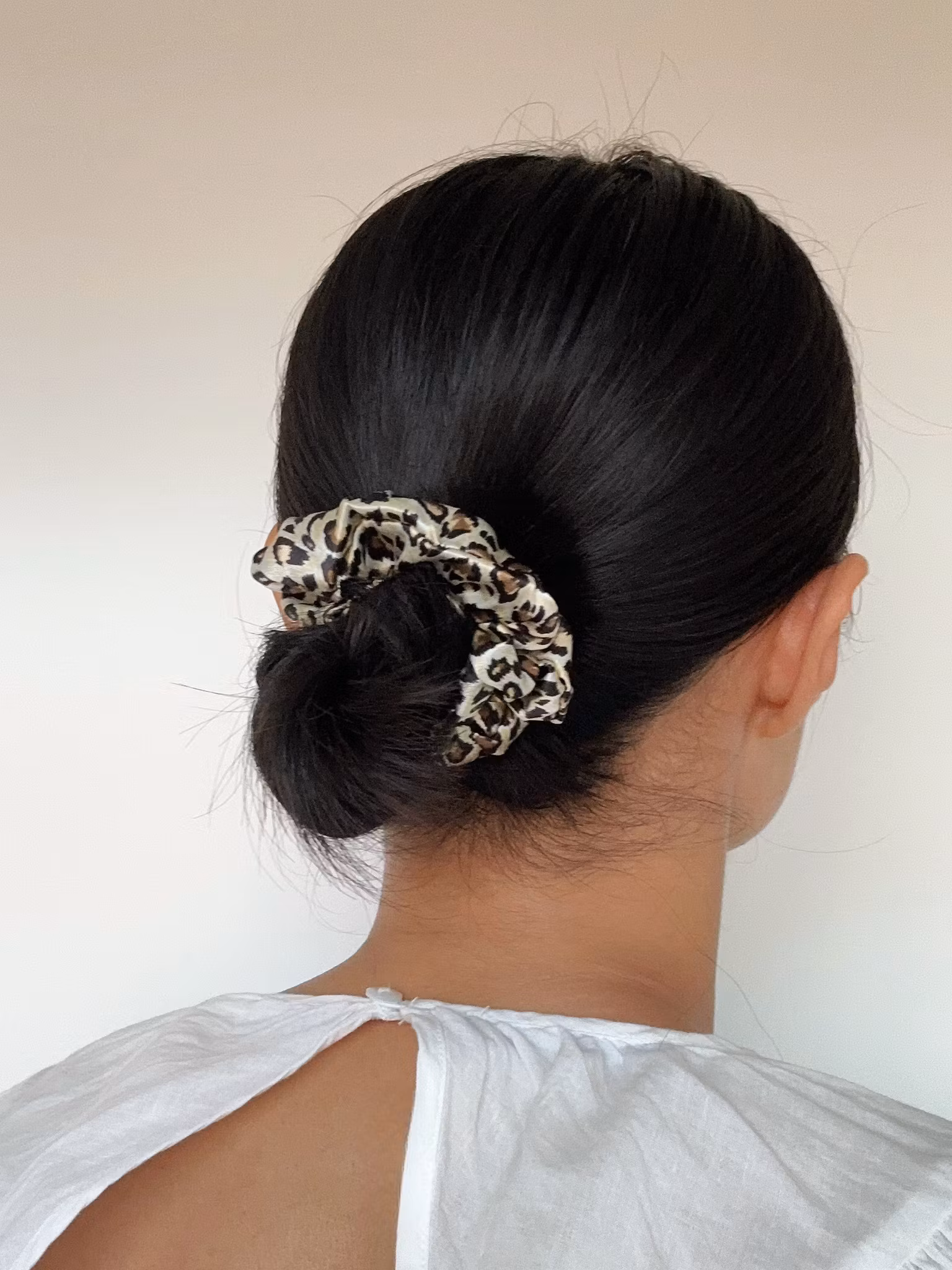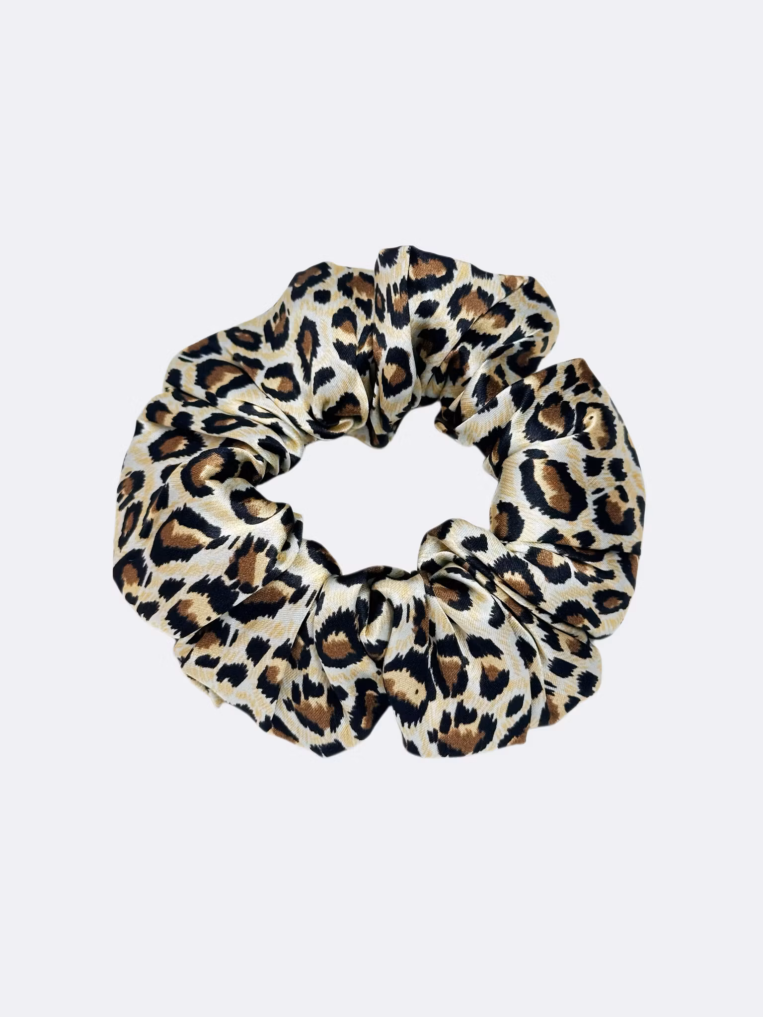 Mullbärssilke scrunchie leopardtryck 10cm