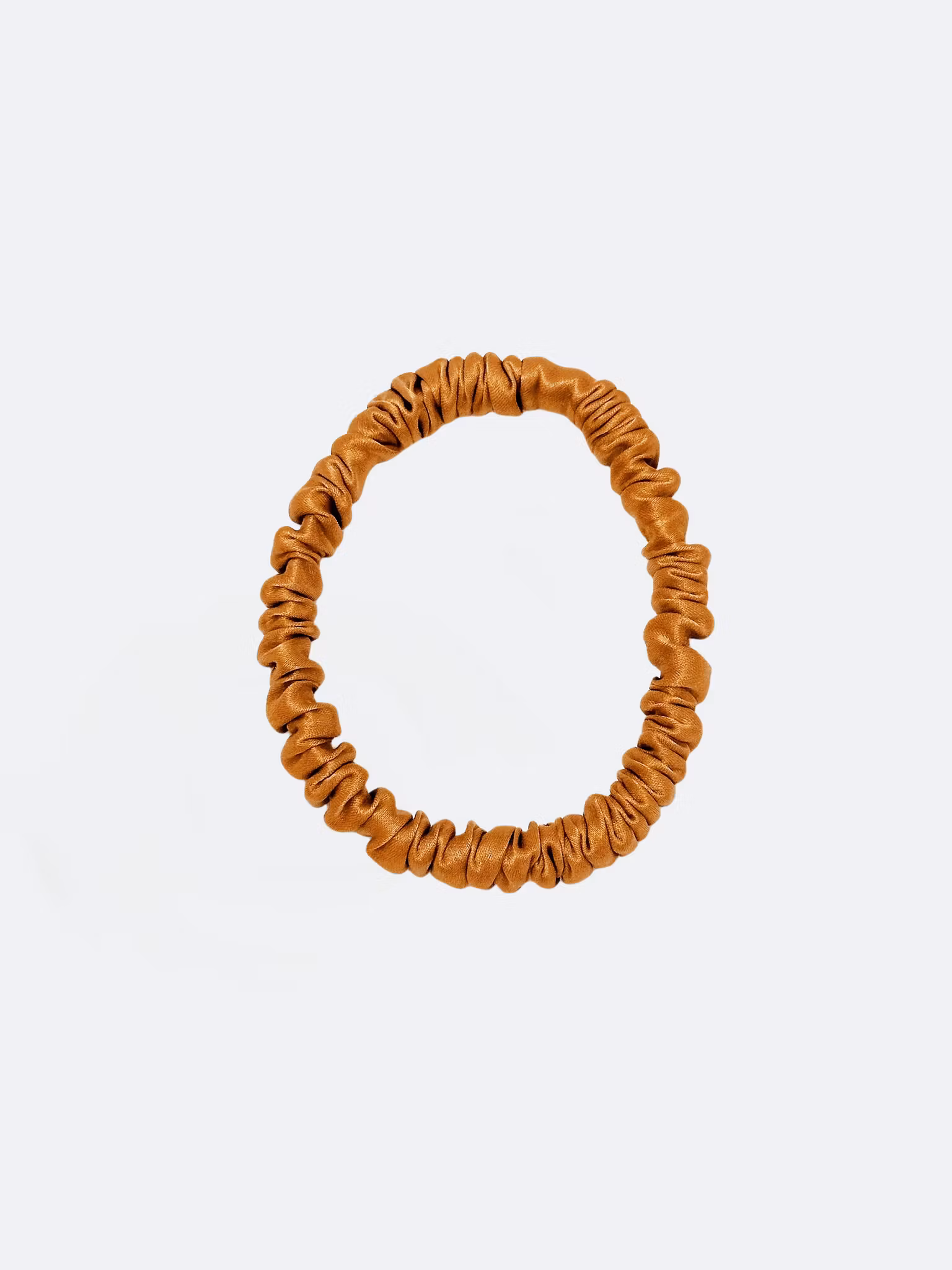 Vacker och tidlös scrunchie av 100 % mullbärssilke med en vikt på 19 momme - vilket är ett mått på silkets kvalitet och tjocklek. Ett smycke för håret utan att skava på det yttre lagret vilket främjar friskt hår. Motverkar märken och avtryck under uppsättningar.