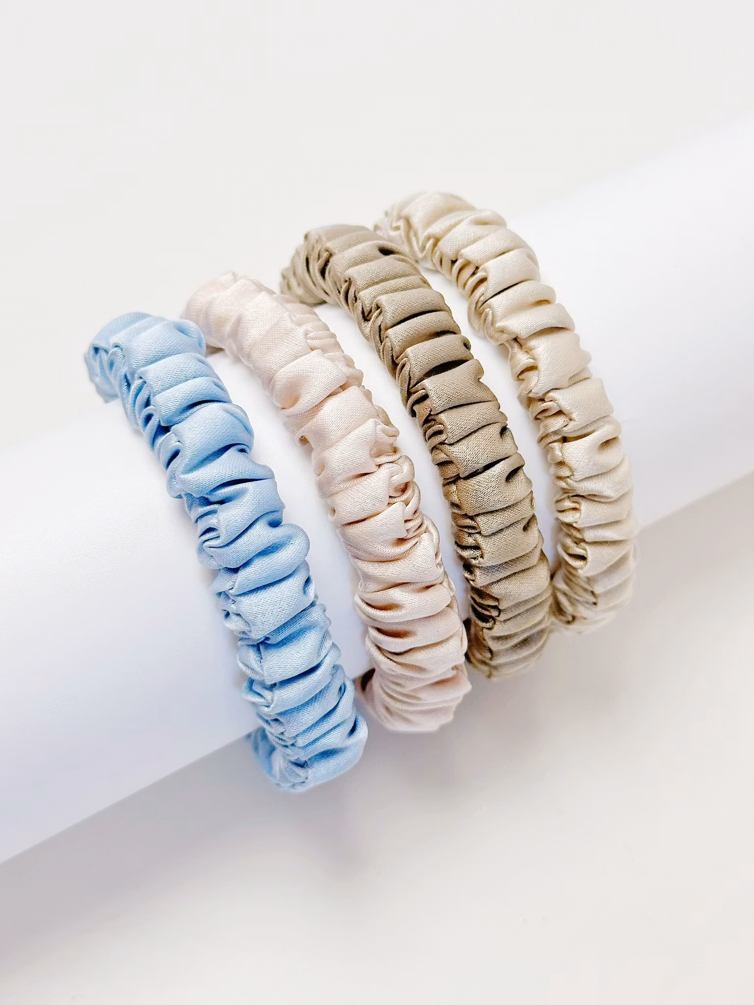 4-pack Mullbärssilke scrunchie i olika färger