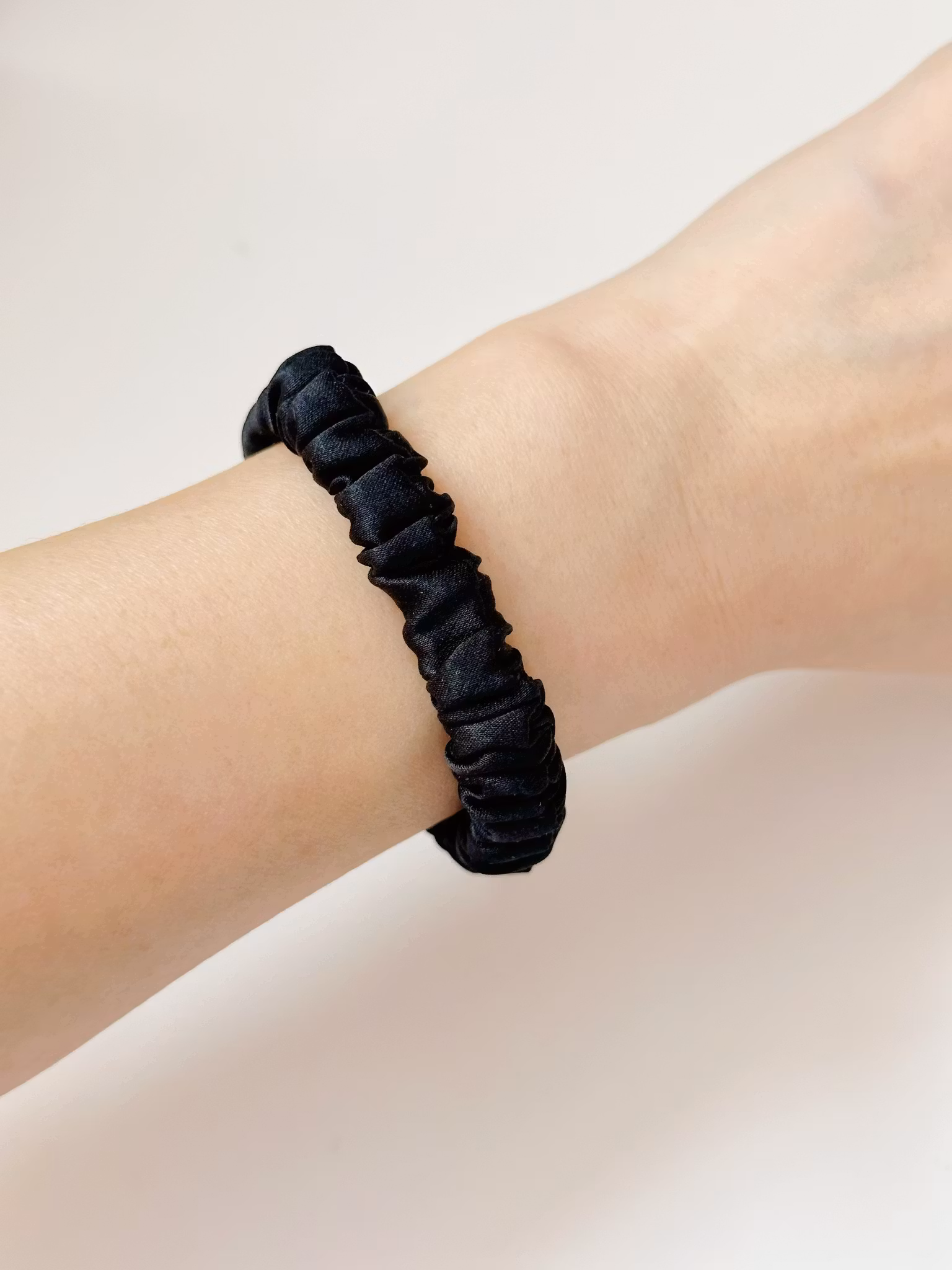 Mulberry Silk Skinny Scrunchies , Svart 1 cm