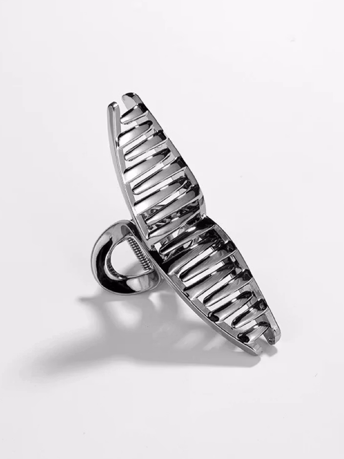 Hårklämma med avlång design som är detaljerad med en ögla, vilket ger en fin profil. Hårklämman har täta piggar som är längre in mot mitten och kortare längst ut. Dekorativ hårklämma som passar perfekt både till hel- eller halvuppsättning.