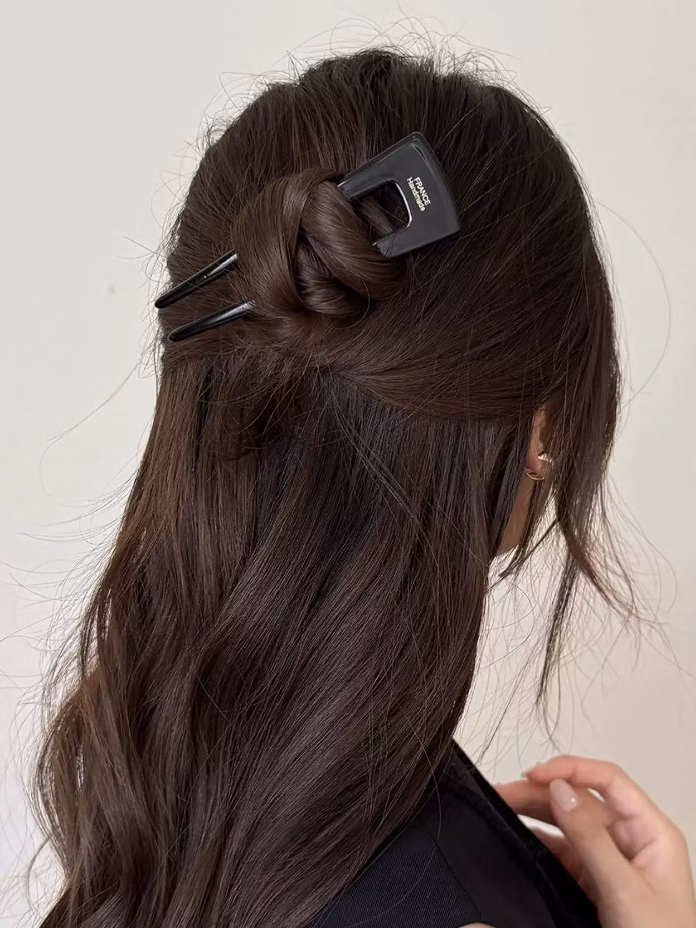 Gör så här: Snurra upp ditt hår i en knut och trä igenom hårknuten med hårnålen så att den fäster. För ännu bättre hållbarhet på din frisyr, börja med att sätta upp håret i en tofs med en tunn hårsnodd, snurra håret runt snodden och trä i hårnålen med ett ben bakom och ett framför snodden.