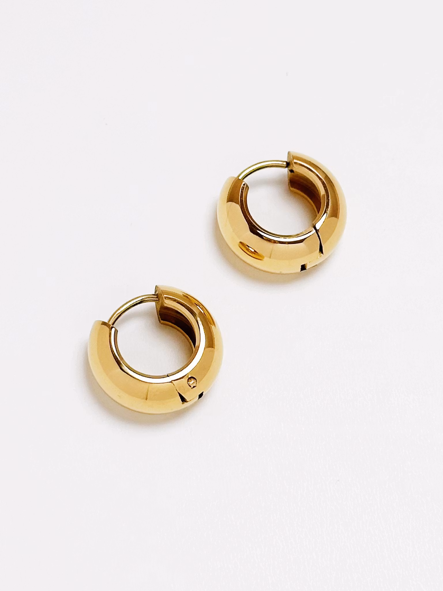 Örhängen i högpolerat rostfritt stål som är PVD-pläterat med 18K guld. Tidlöst smycke tillverkat i ett vattentåligt, allergivänligt och slitstarkt material som håller dem fina länge. Bada, duscha och träna utan att oroa dig för att de ska tappa färg.