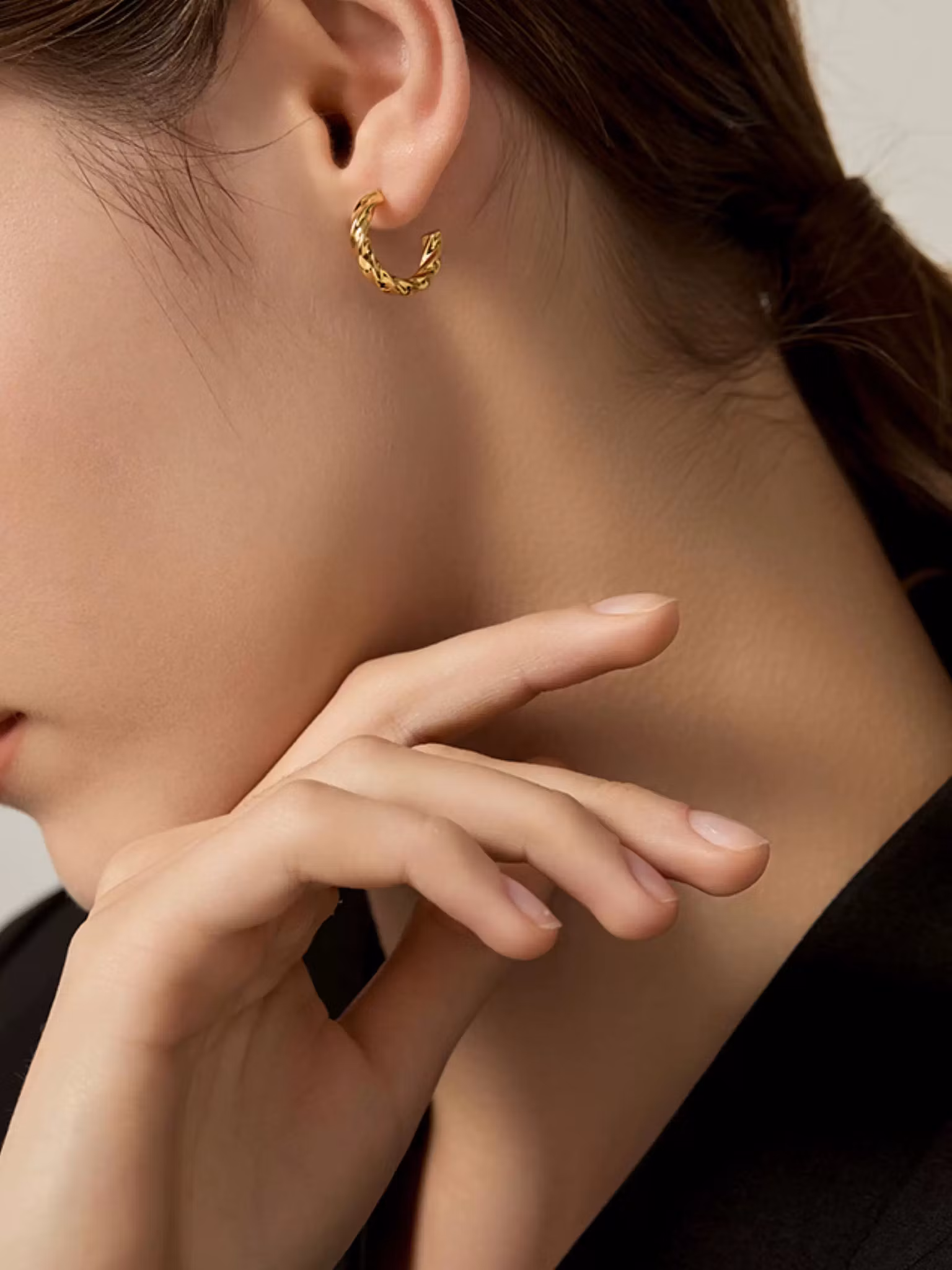 Örhängen i högpolerat rostfritt stål som är PVD-pläterat med 18K guld. Tidlöst smycke tillverkat i ett vattentåligt, allergivänligt och slitstarkt material som håller dem fina länge. Bada, duscha och träna utan att oroa dig för att de ska tappa färg.