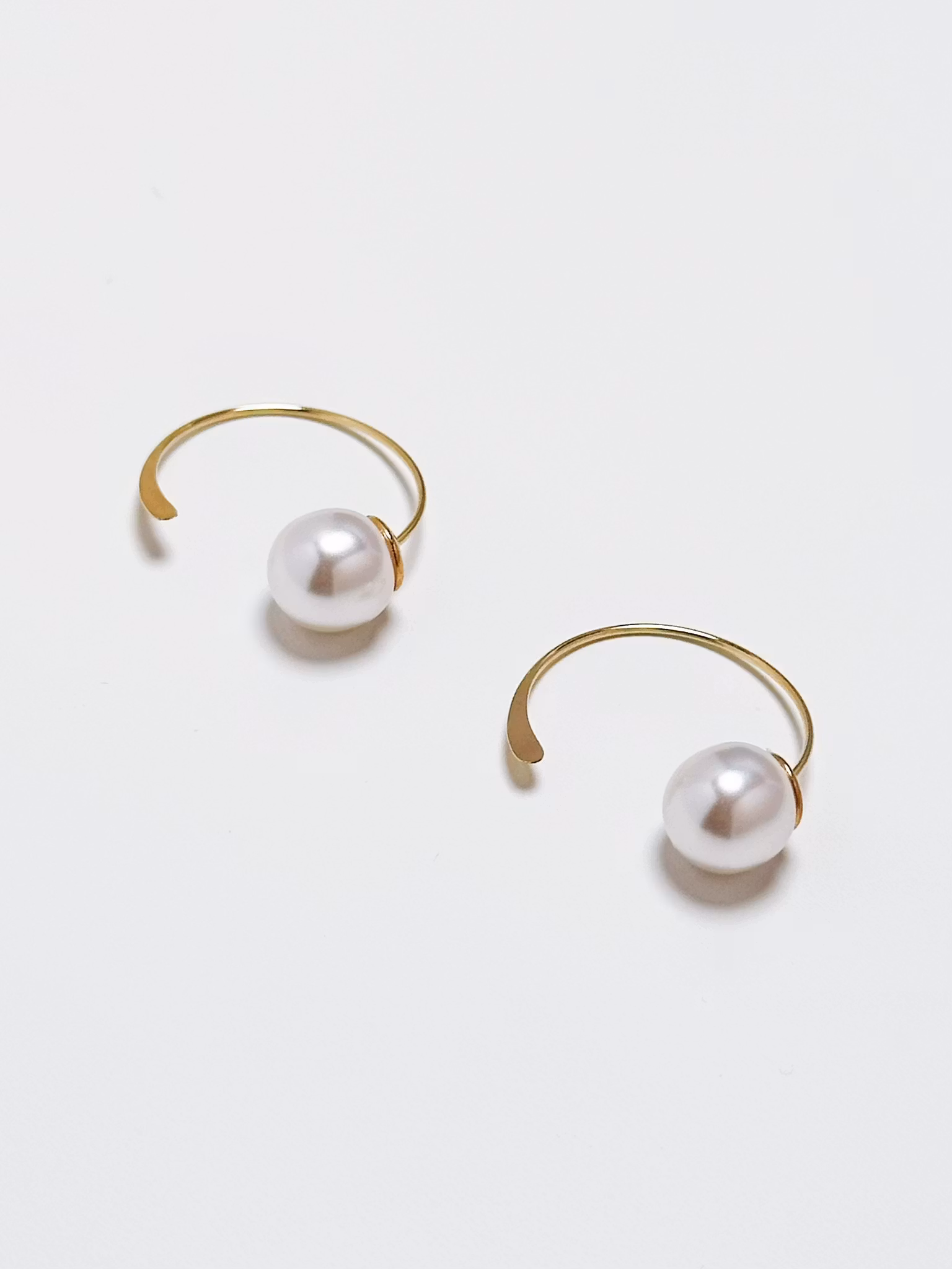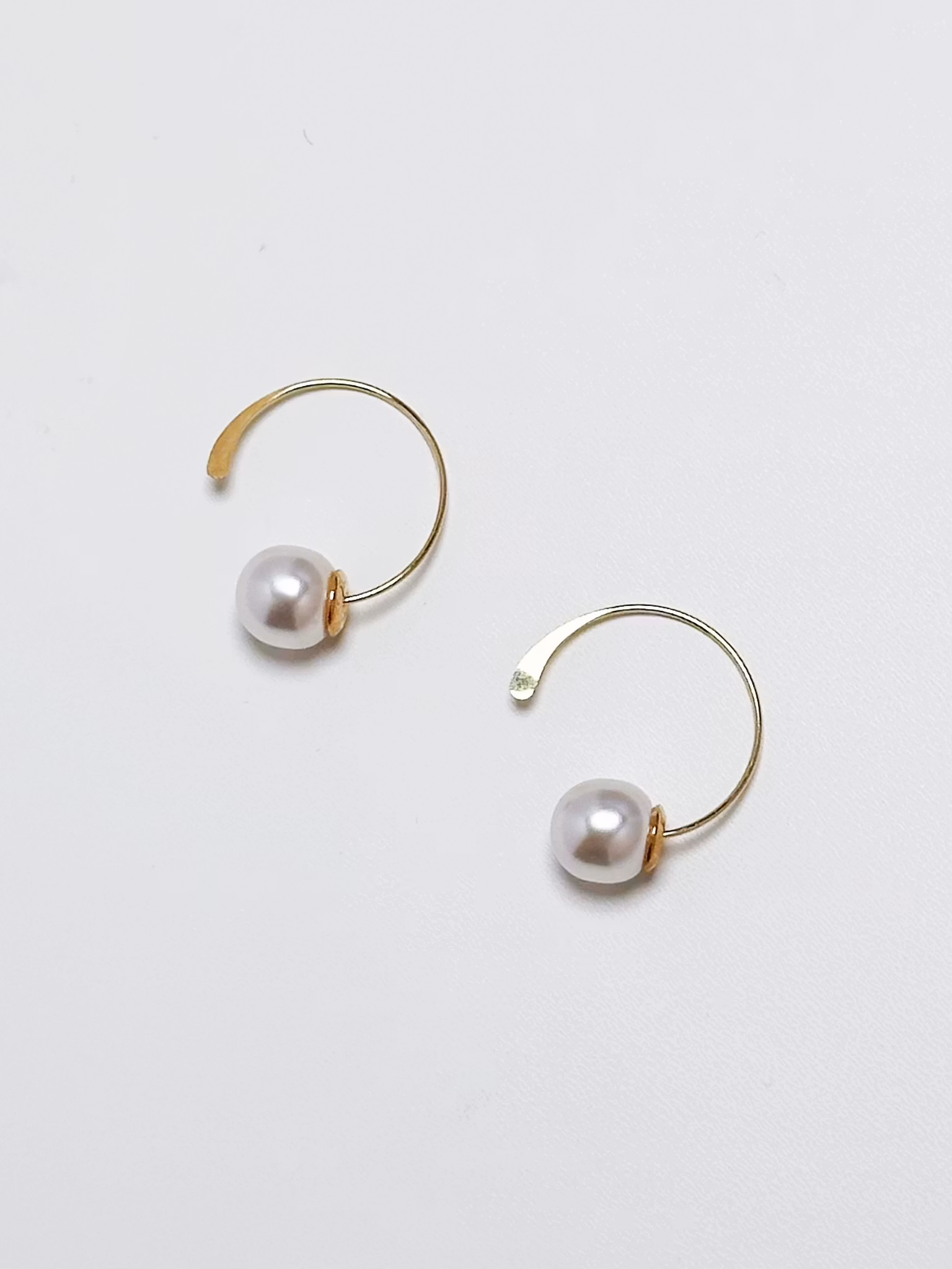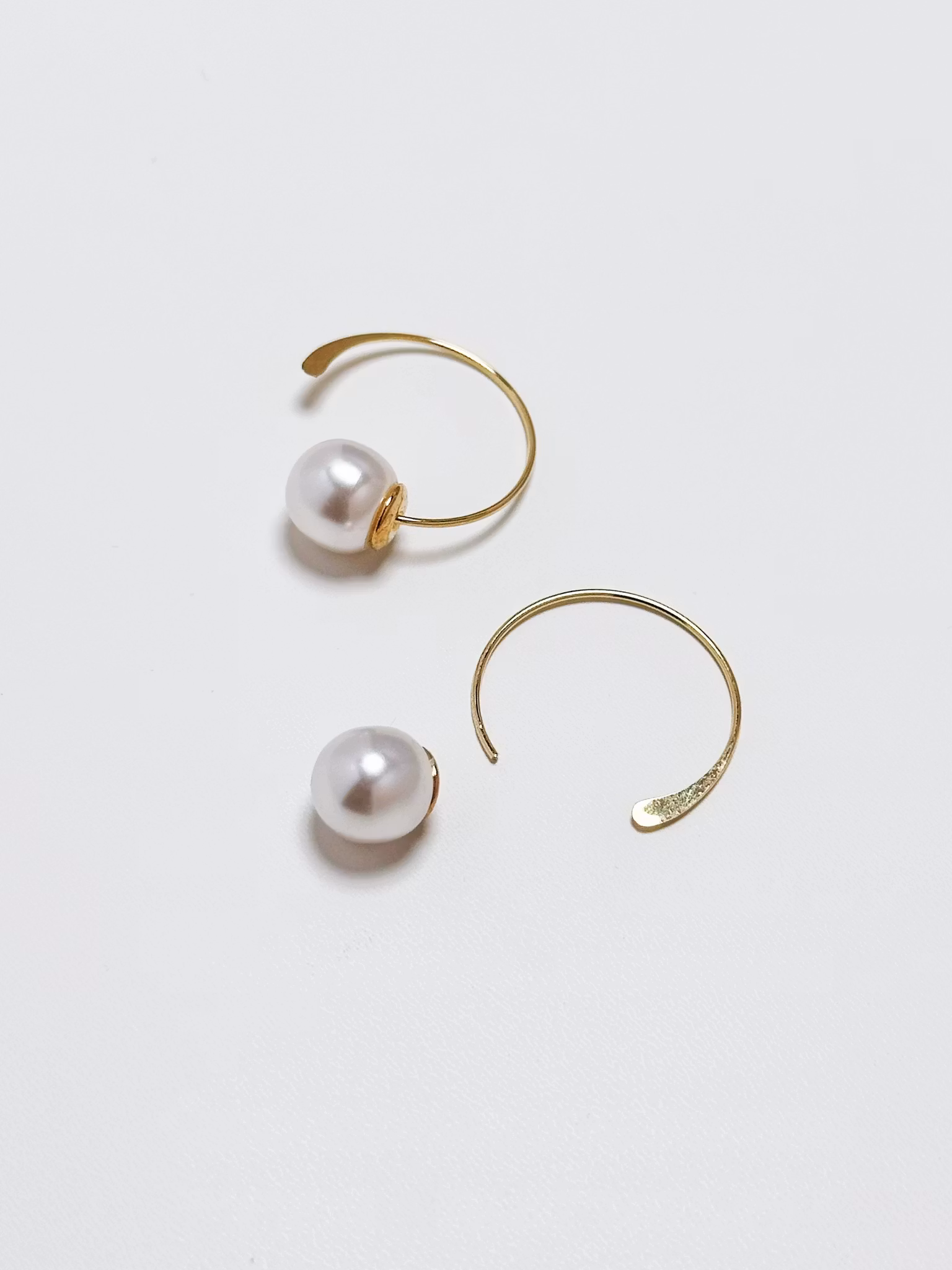 Örhängena är gjorda av 14K guldfyllt från USA, som har en högre guldhalt än guldplätering. Det är 1/20 av guldets vikt i den internationella standarden, och det är gjutet tillsammans med andra metaller vid hög temperatur. Den presenterar den ljusa gyllene lystern som unga människor älskar, och den är skuren i en färg från insidan till utsidan. Bra färghållning. Naturliga sötvattenspärlor och glänsande zirkoner, eleganta och enkla, kan ges i present.