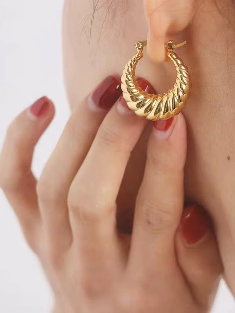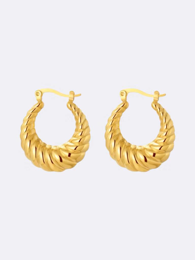Örhängen i högpolerat rostfritt stål som är PVD-pläterat med 18K guld. Tidlöst smycke tillverkat i ett vattentåligt, allergivänligt och slitstarkt material som håller dem fina länge. Bada, duscha och träna utan att oroa dig för att de ska tappa färg.
