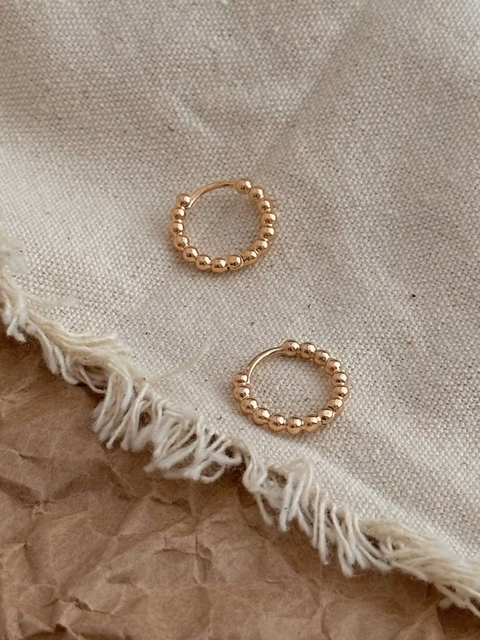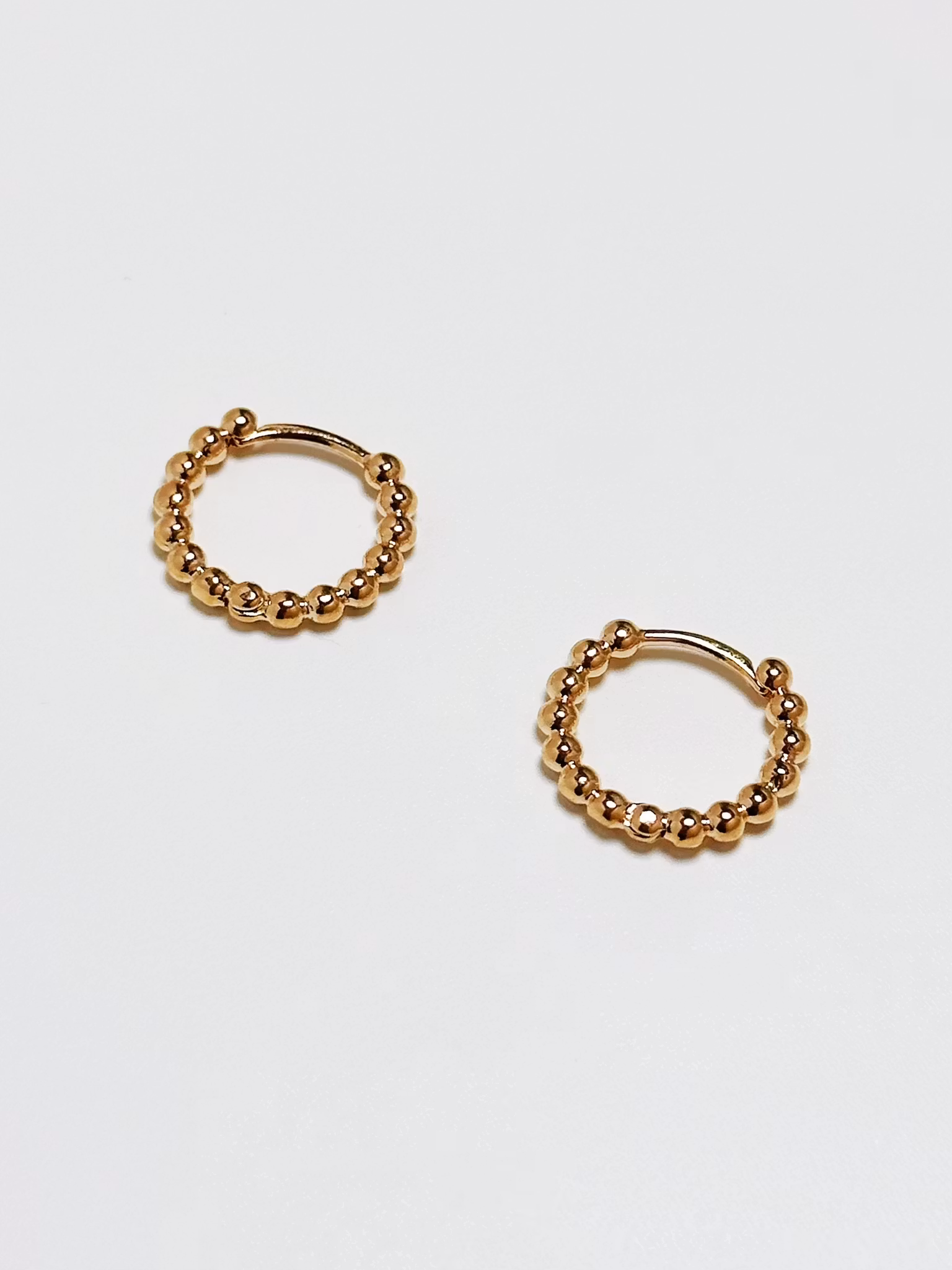 Små hoops i förgyllt 18 karat guld med små sammansvetsade kulor. En snygg variant av klassiska hoops som passar till alla tillfällen. Perfekt diskreta med dekorativa detaljer.