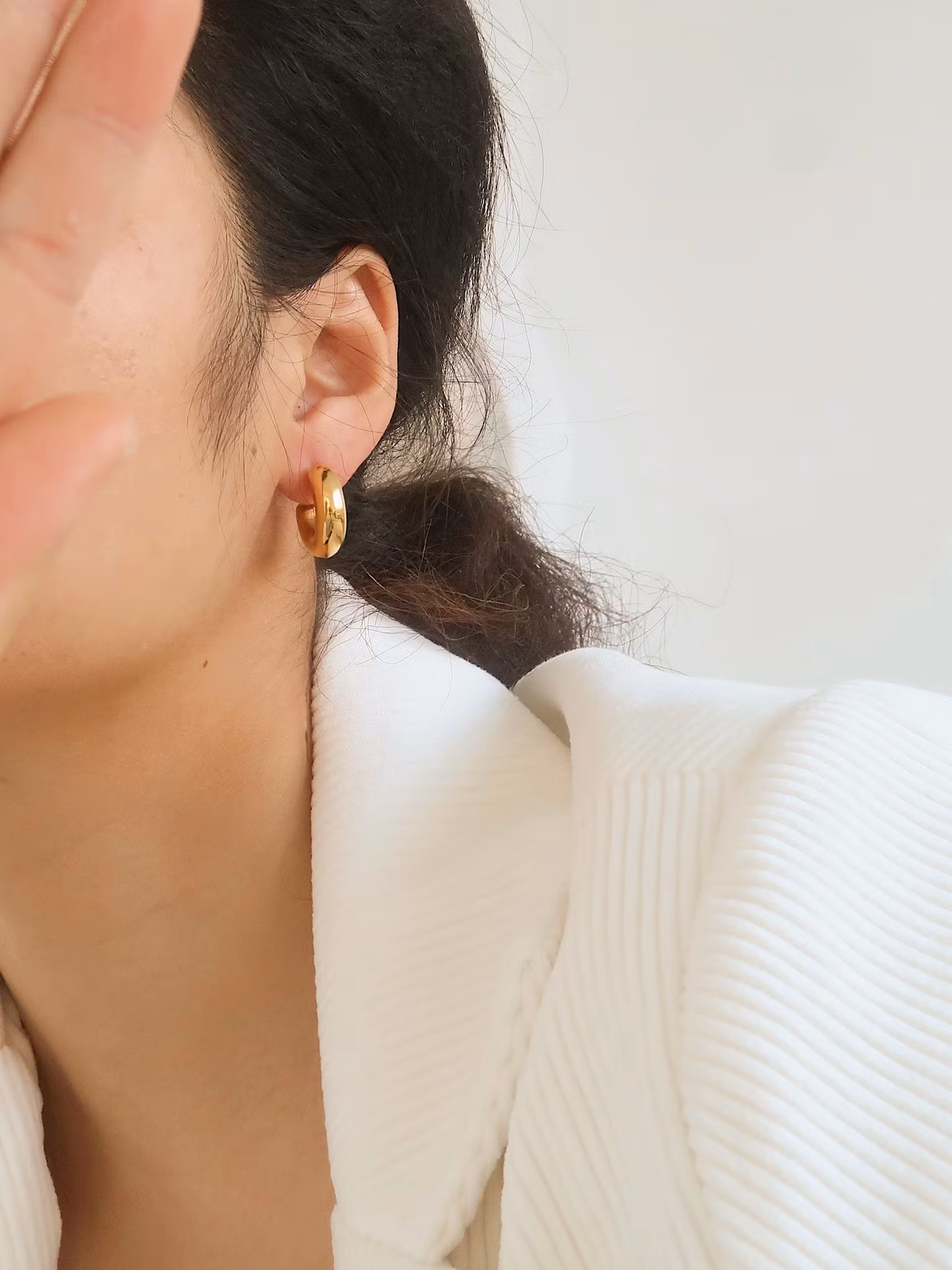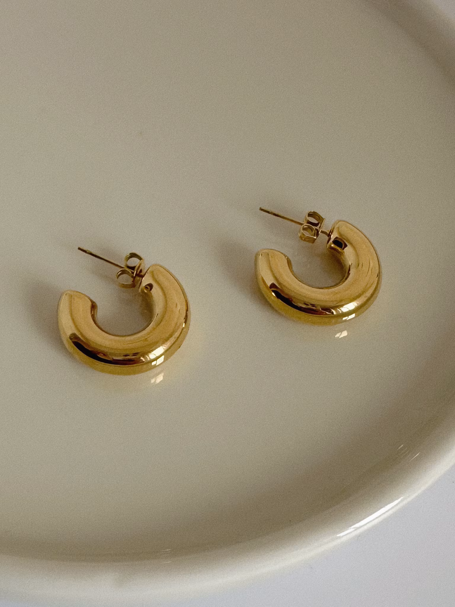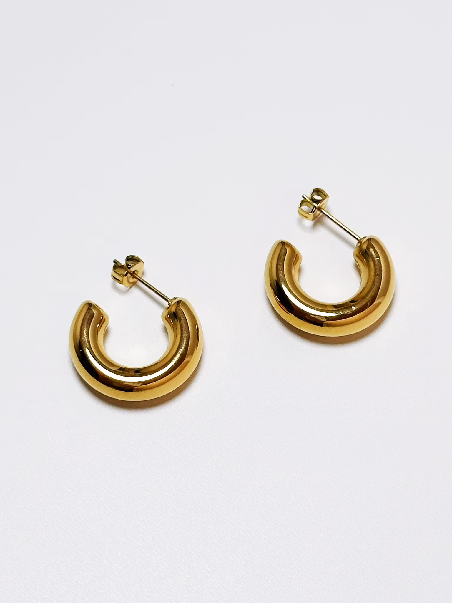 Örhängen i högpolerat rostfritt stål som är PVD-pläterat med 18K guld. Tidlöst smycke tillverkat i ett vattentåligt, allergivänligt och slitstarkt material som håller dem fina länge. Bada, duscha och träna utan att oroa dig för att de ska tappa färg.