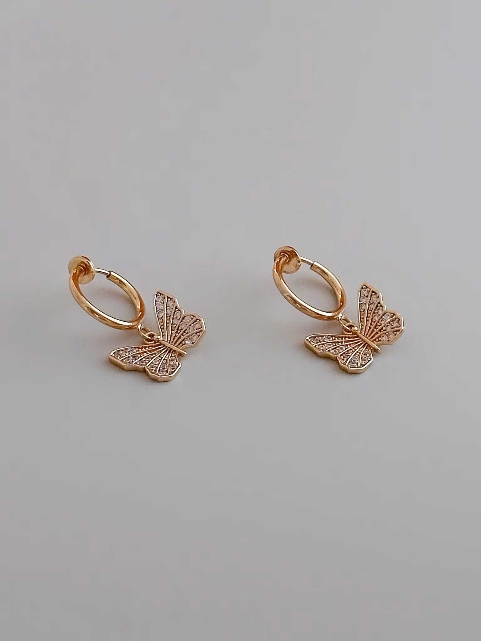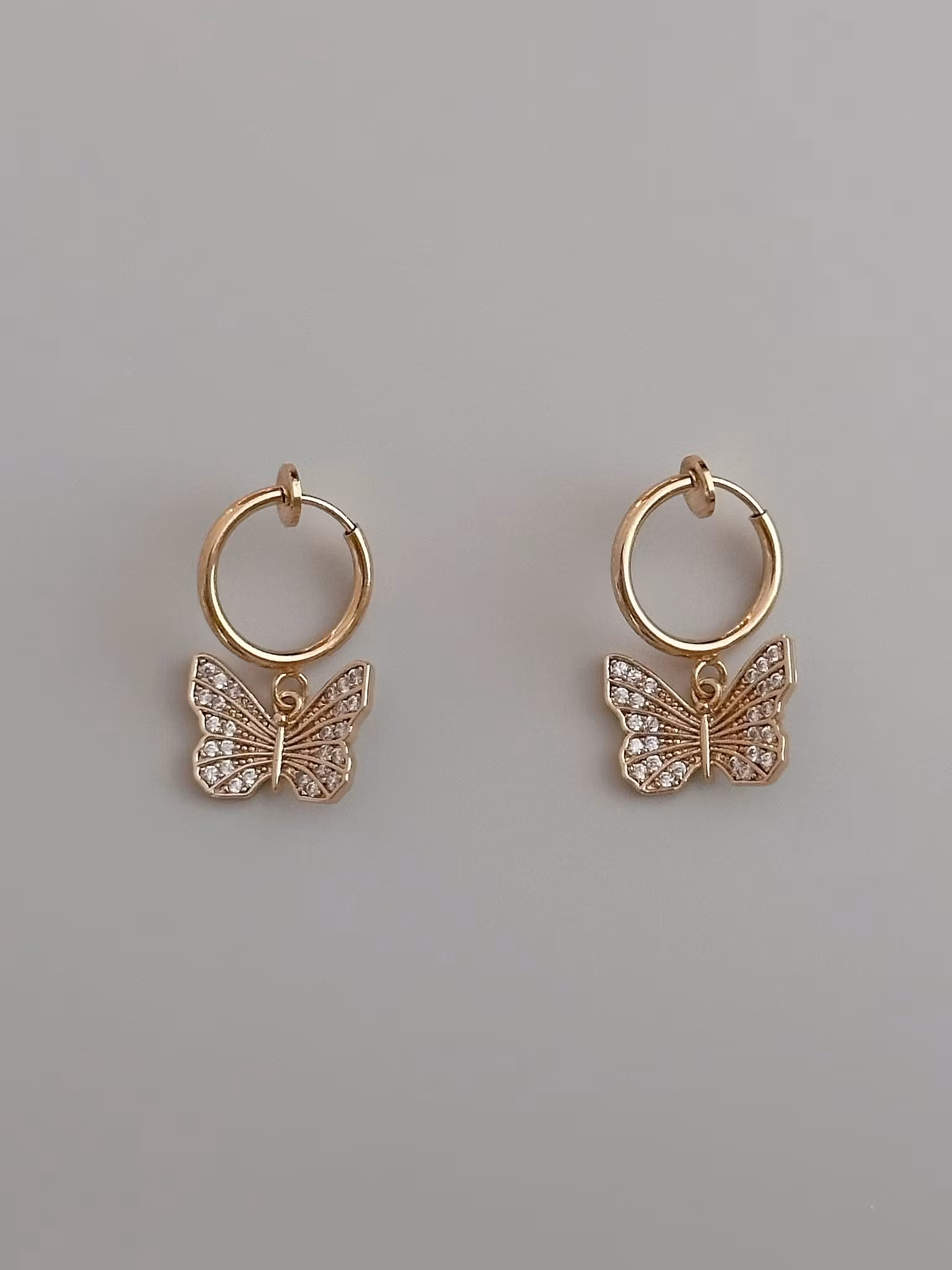 Ett gnistrande hänge med fjärilsmotiv av glassten.Lämplig för personer utan hål i öronen