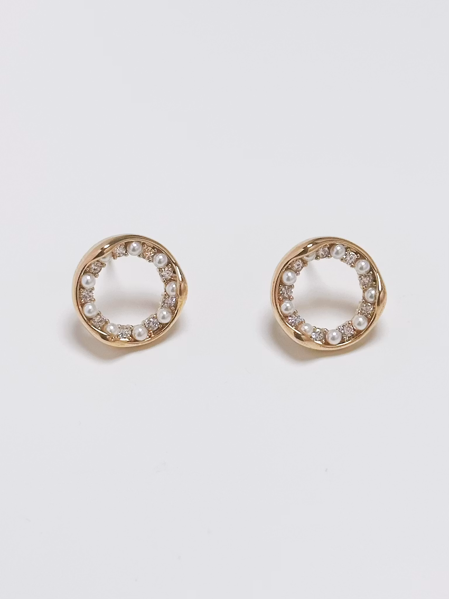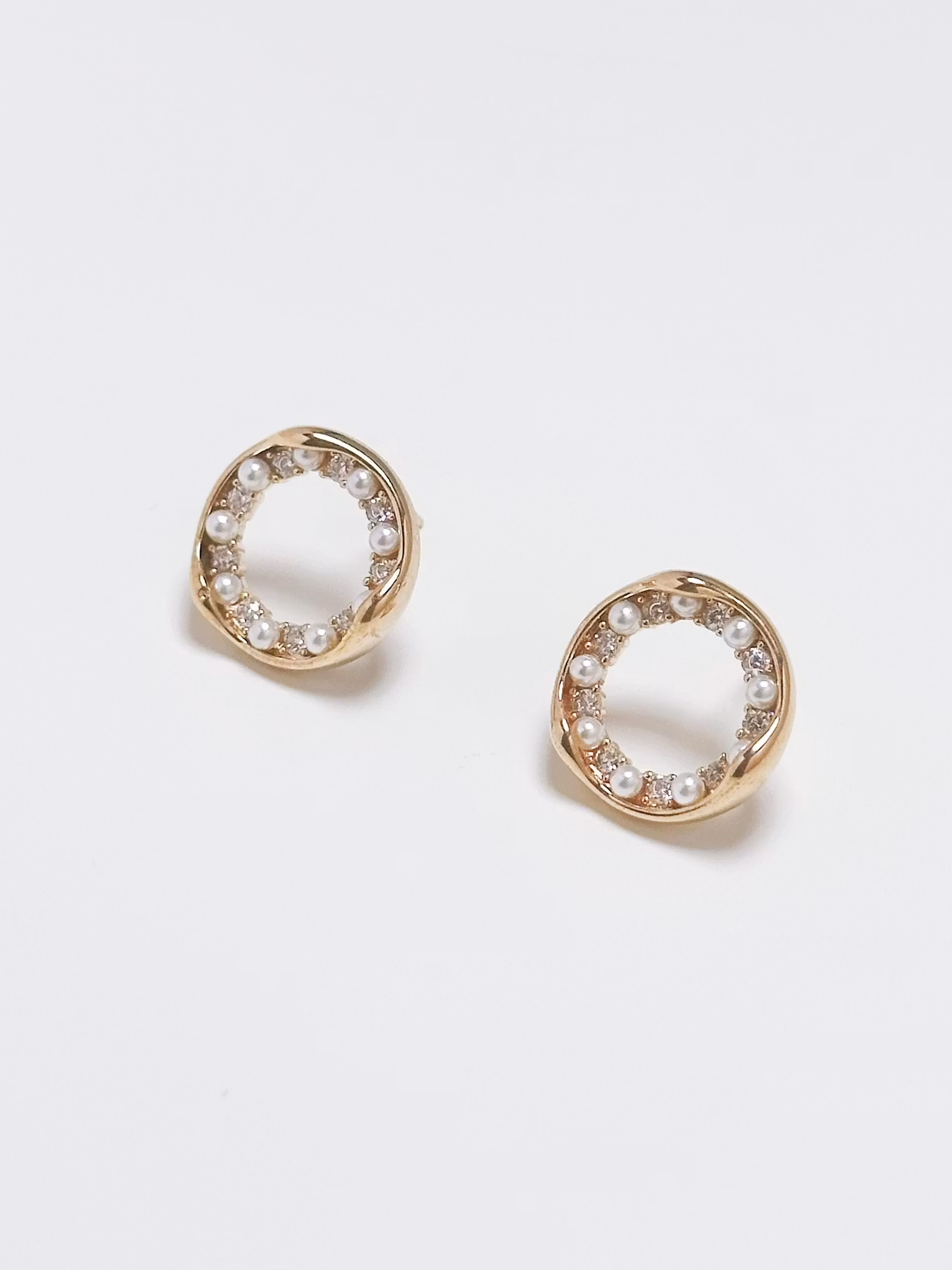 REA Runda guldfärgade studs med glasstenar och pärlor