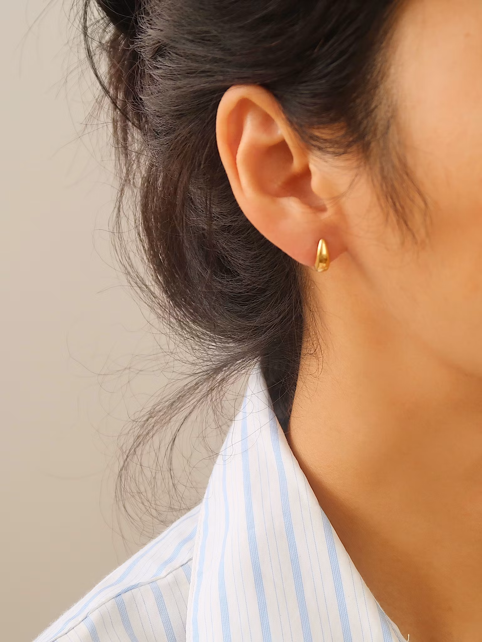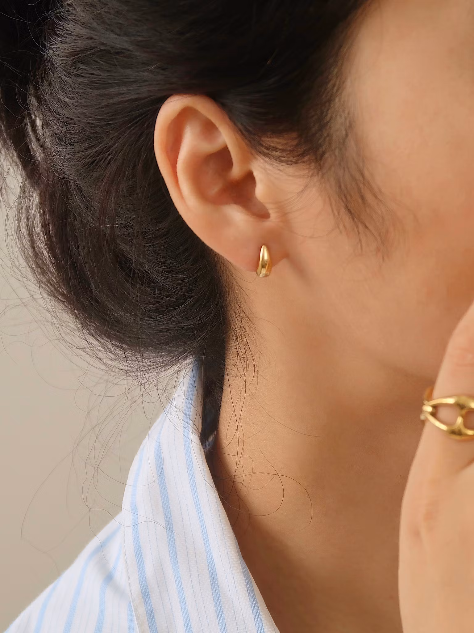 Örhängen i högpolerat rostfritt stål som är PVD-pläterat med 18K guld. Tidlöst smycke tillverkat i ett vattentåligt, allergivänligt och slitstarkt material som håller dem fina länge. Bada, duscha och träna utan att oroa dig för att de ska tappa färg.
