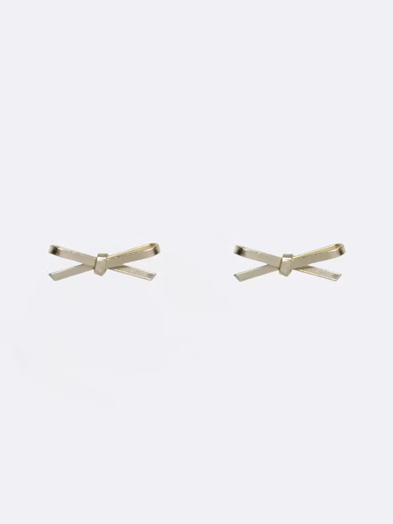 Små dekorativa örhängen i guldfärgad metall i form av rosetter.