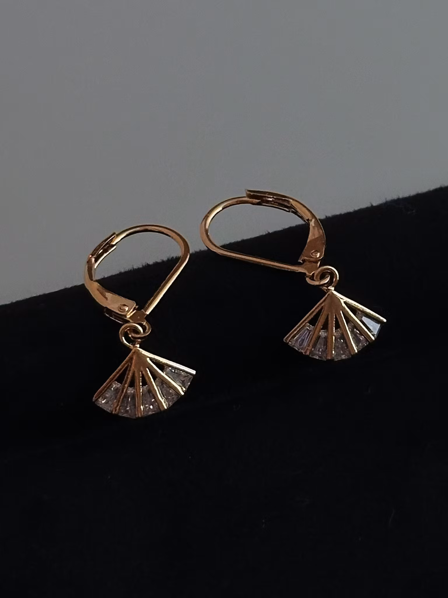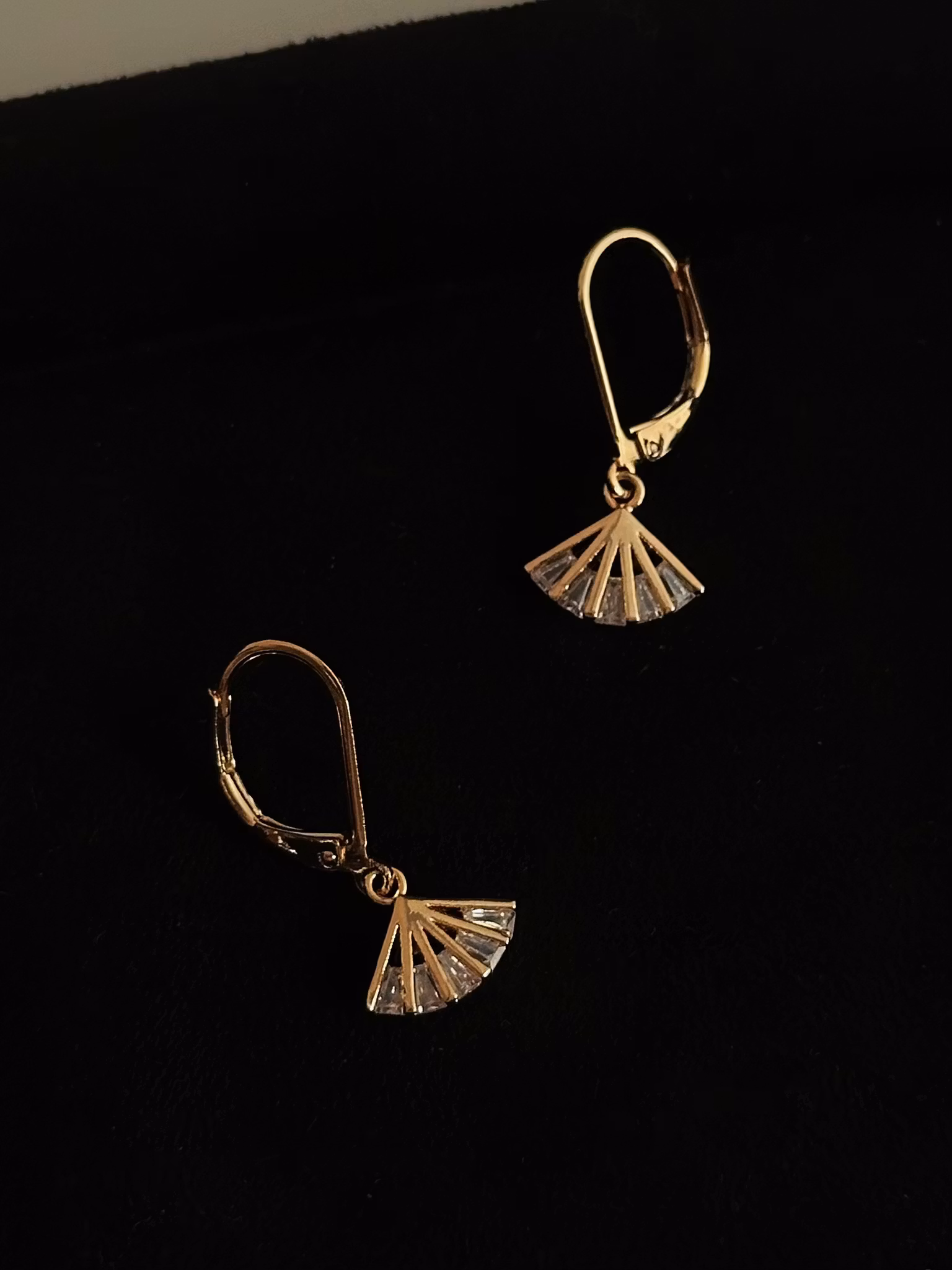 Guldpläterade örhängen med solfjäderformade hängen. Ett par enkla örhängen med stilren design.