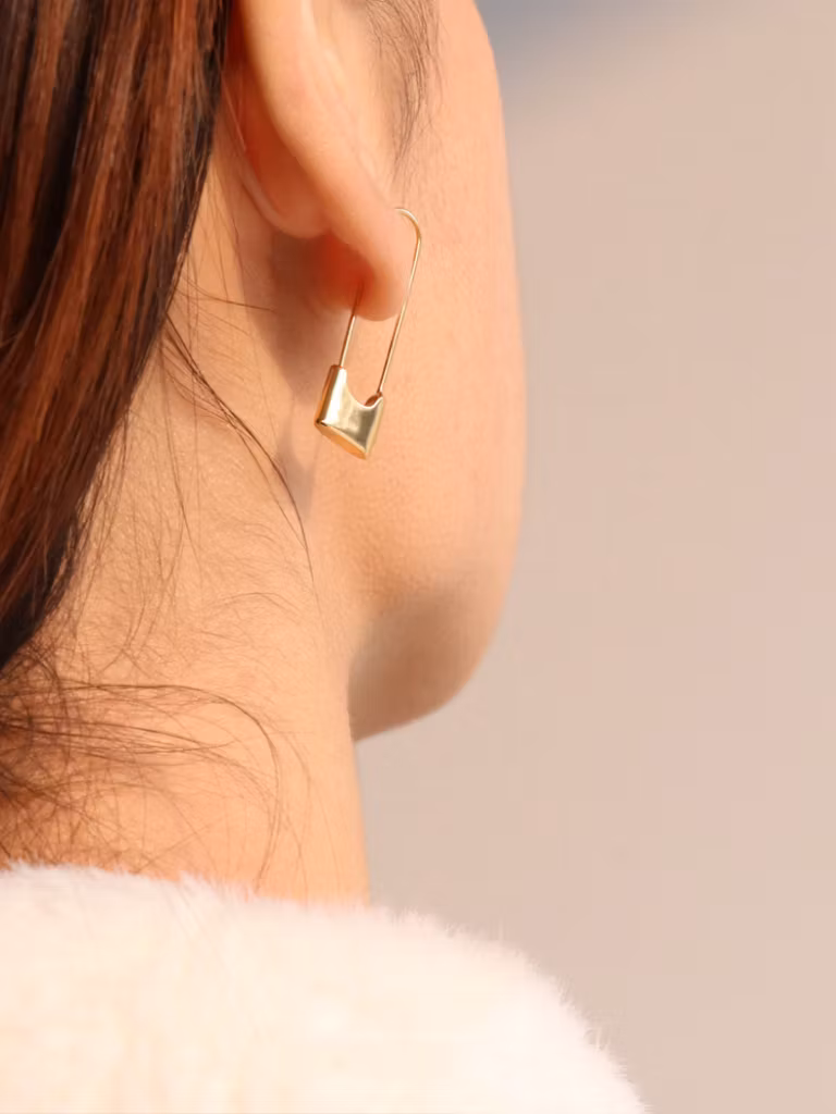 18K guldpläterade örhängen med låsdesign. Ett par stilrena örhängen med lekfull design som passar till alla tillfällen.ꔷ INFORMATION