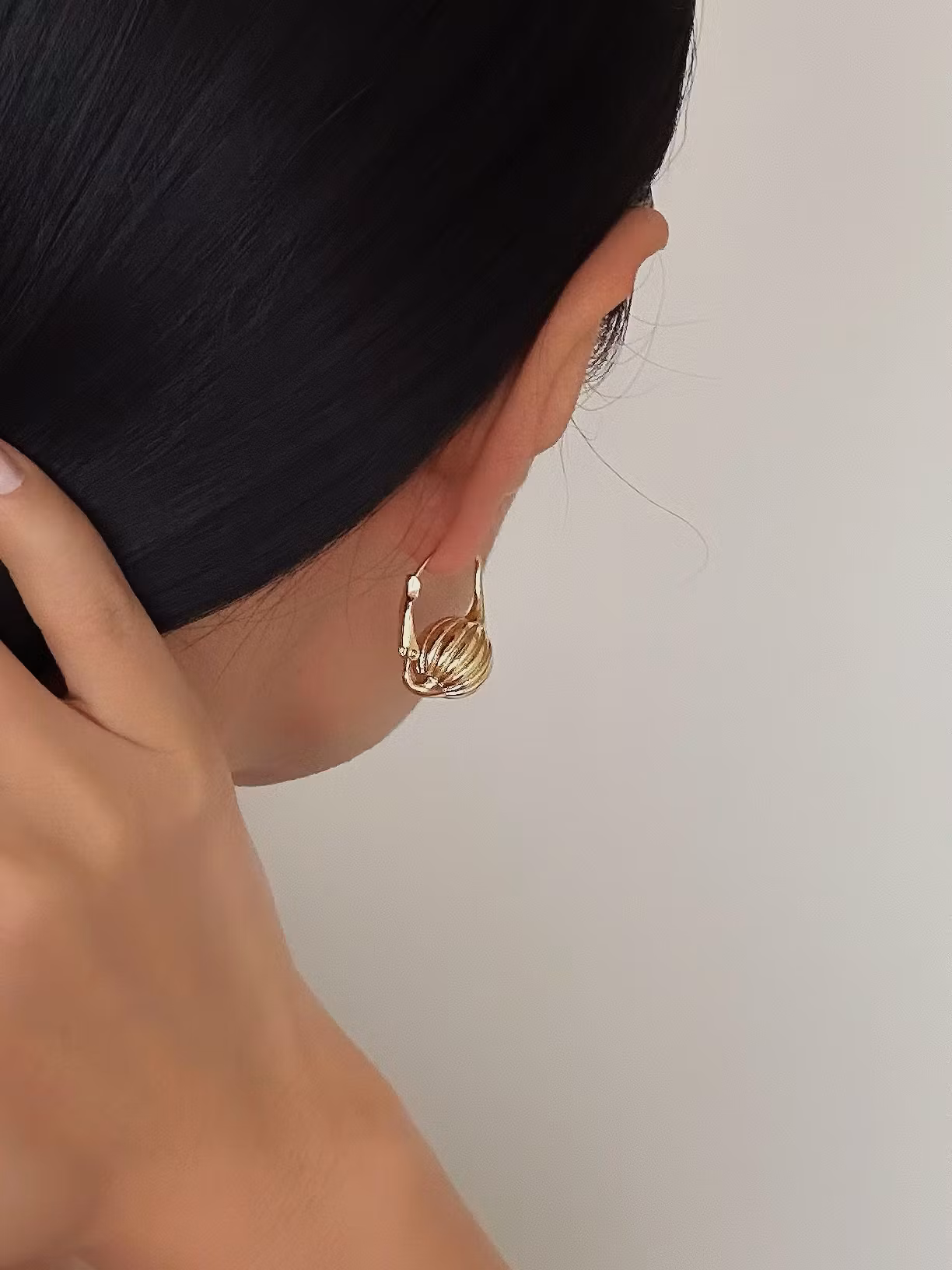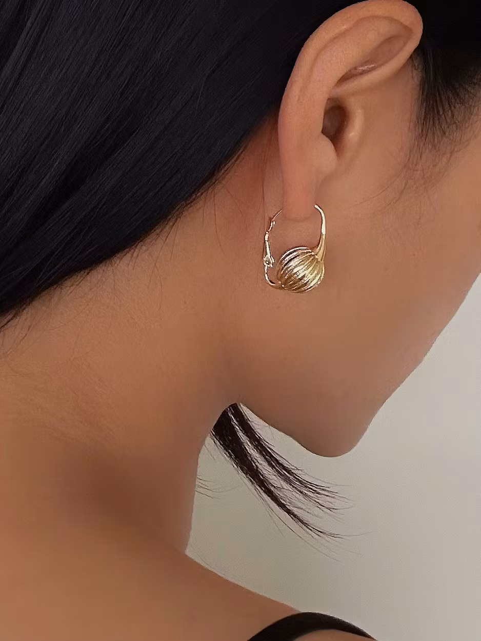 Sfären är ihålig och har måttlig vikt. Ett par stora örhängen med minimalistisk design som ger det lilla extra till din outfit.