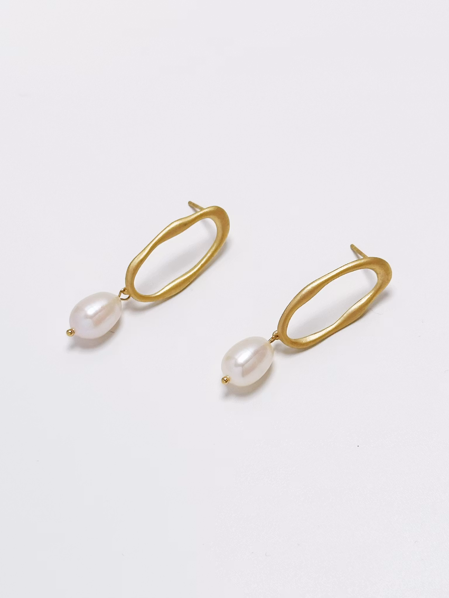 Hängande örhängen med vågdesign och vita pärlor i oval form som hänger längst ner. Ett par dekorativa örhängen som passar till alla tillfällen.ꔷ INFORMATION